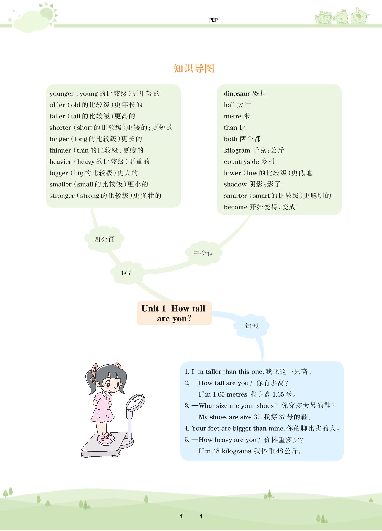 2021下册六年级英语PEP版 Unit 1 知识导图