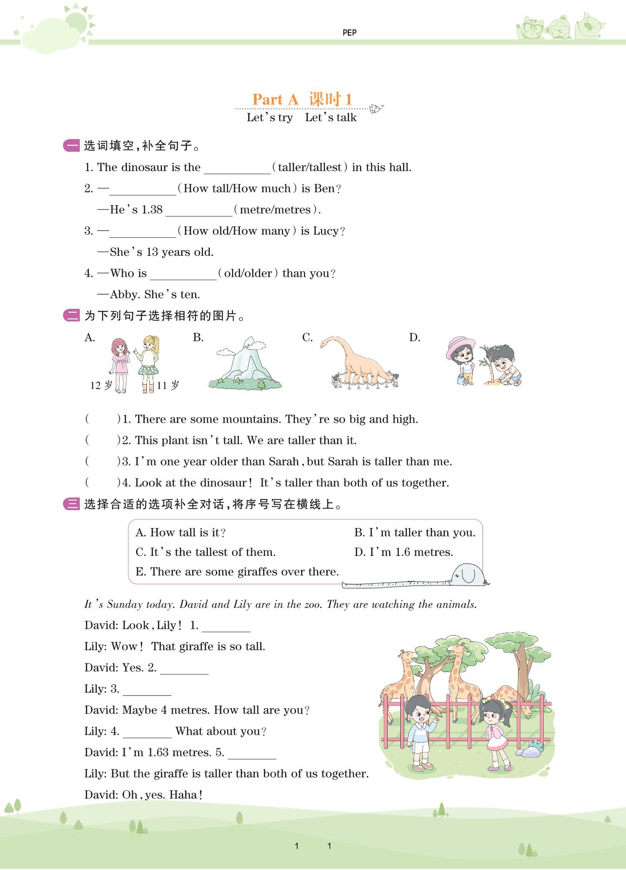 2021下册六年级英语PEP版 Unit 1 Part A—课时 1 Let’s try Let’s talk