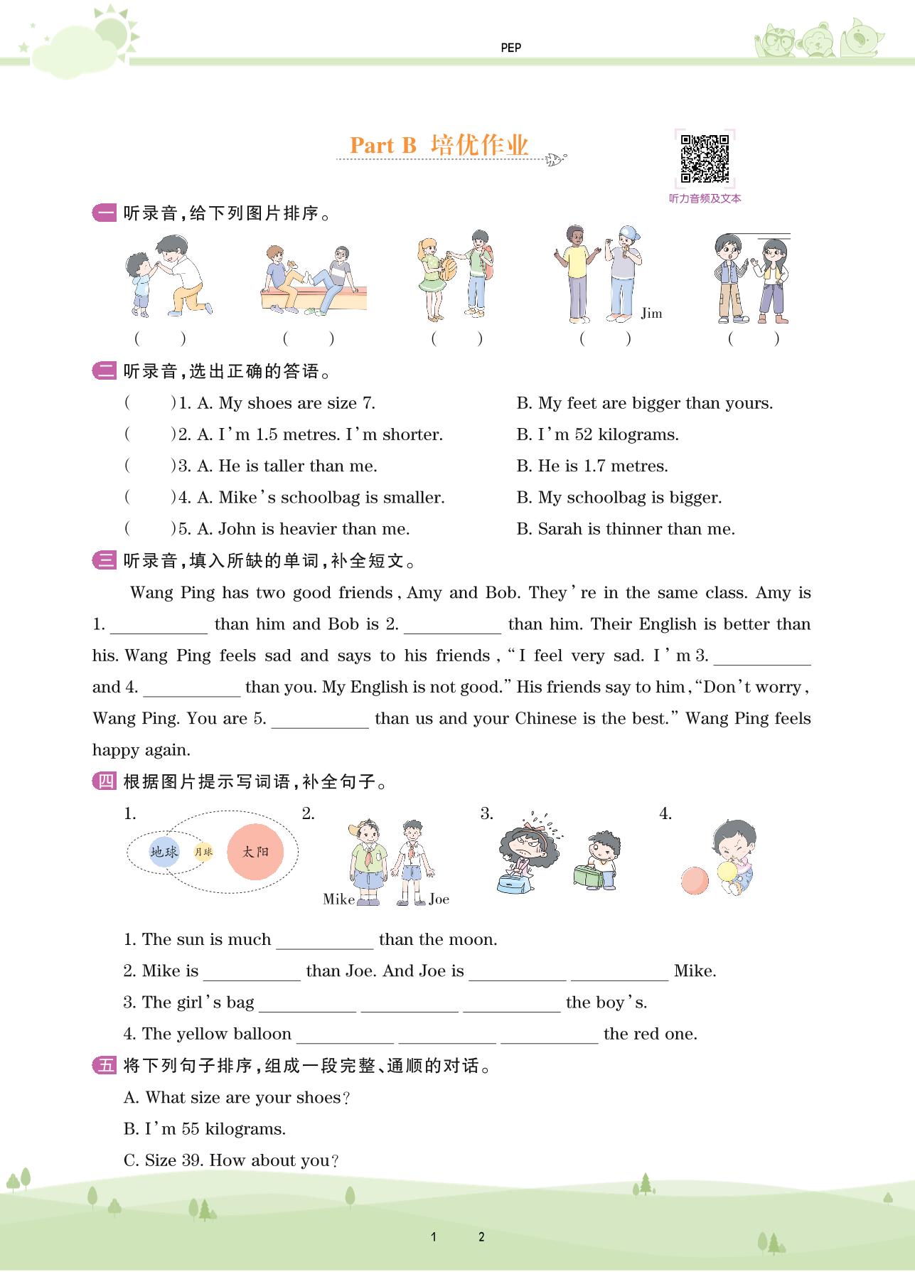 2021下册六年级英语PEP版 Unit 1 Part B 培优作业