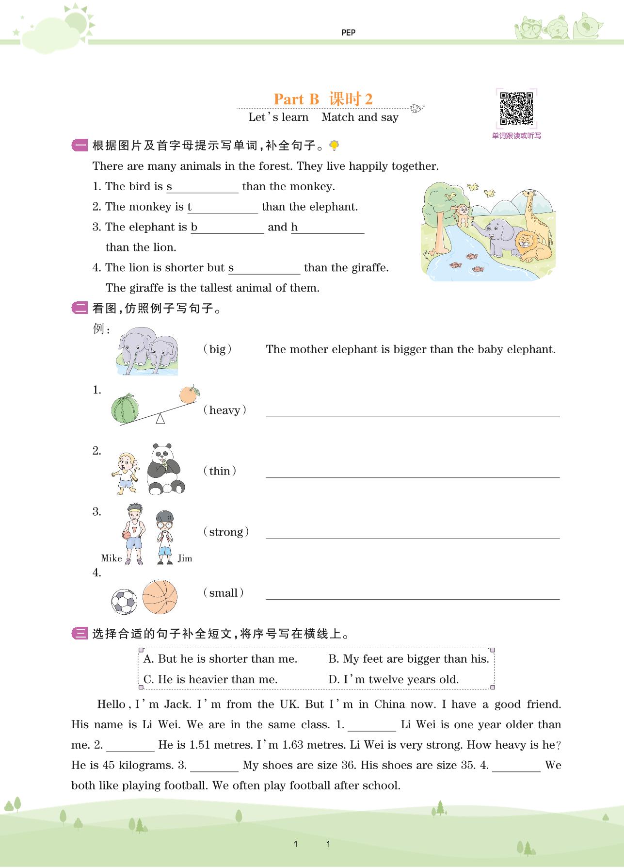 2021下册六年级英语PEP版 Unit 1 Part B—课时 2 Let’s learn Match and say