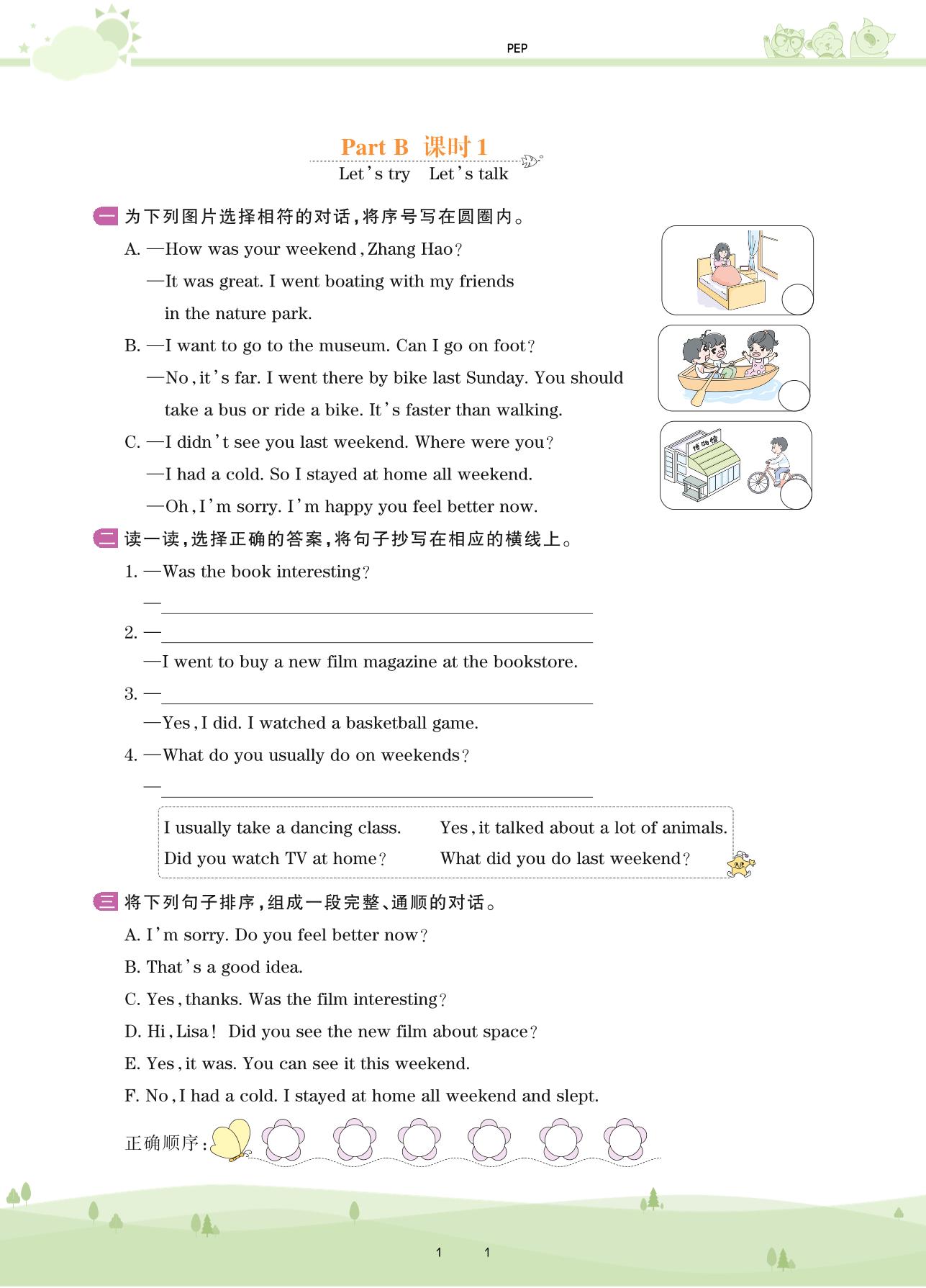 2021下册六年级英语PEP版 Unit 2 Part B—课时 1 Let’s try Let’s talk