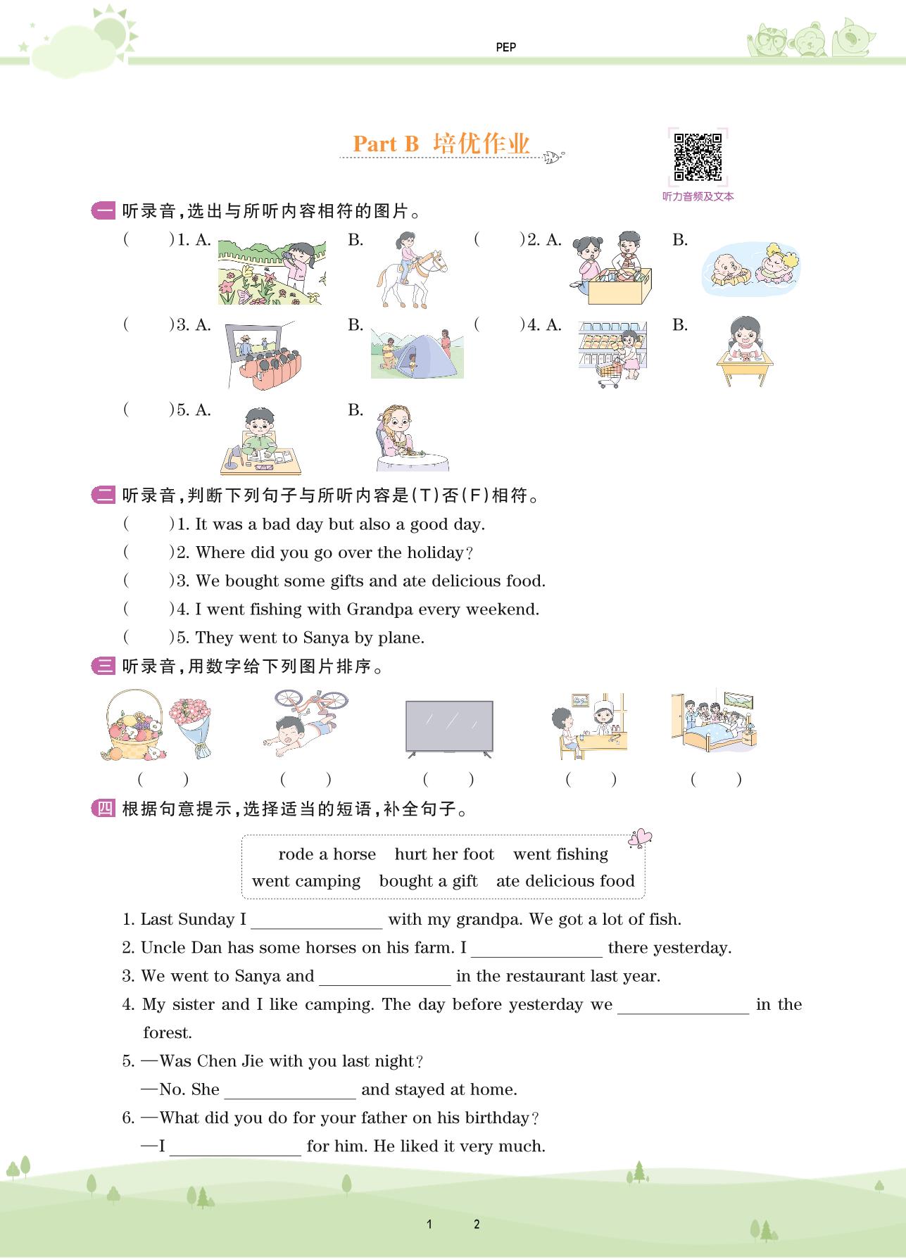 2021下册六年级英语PEP版 Unit 3 Part B 培优作业