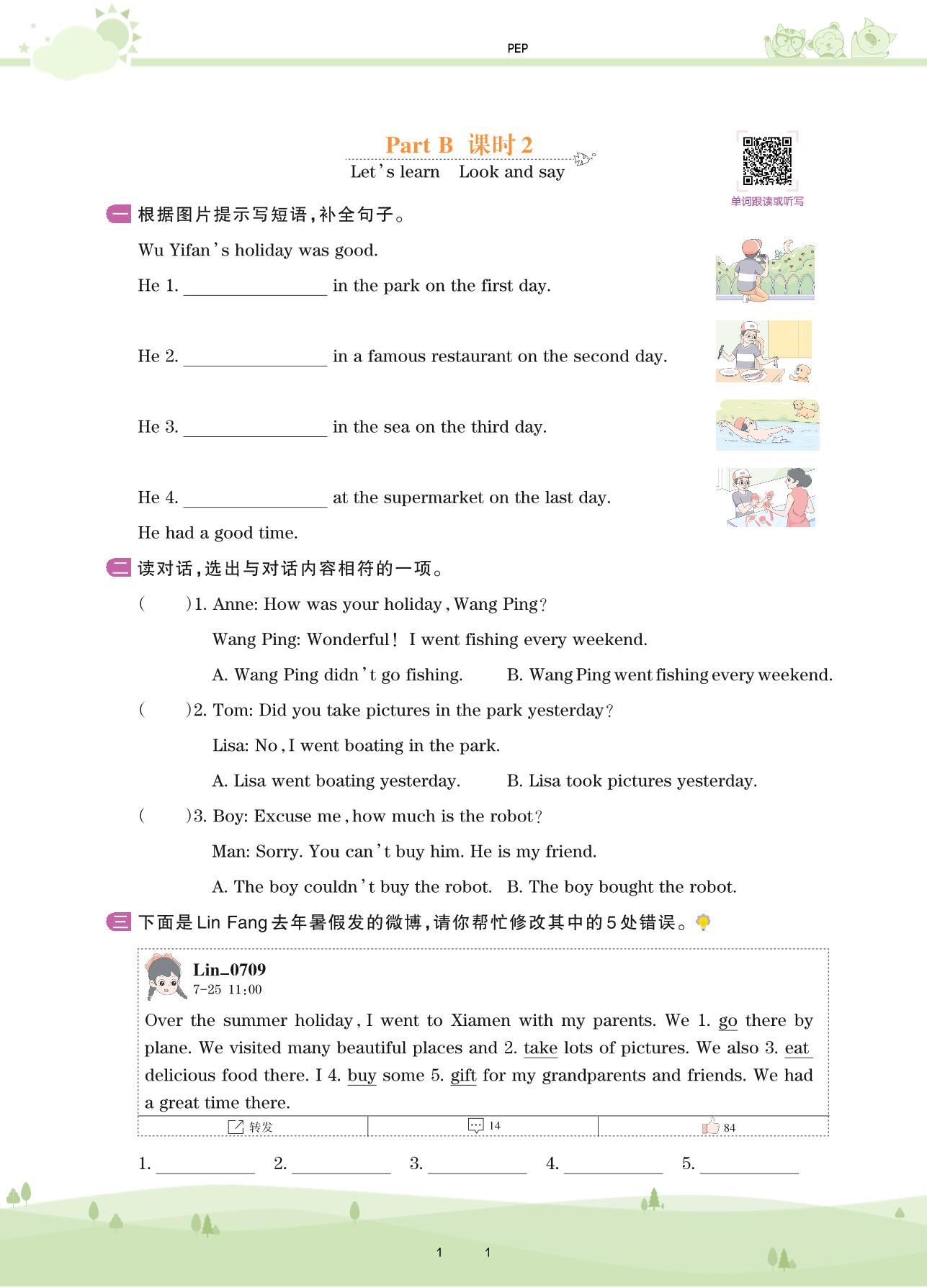 2021下册六年级英语PEP版 Unit 3 Part B—课时 2 Let’s learn Look and say