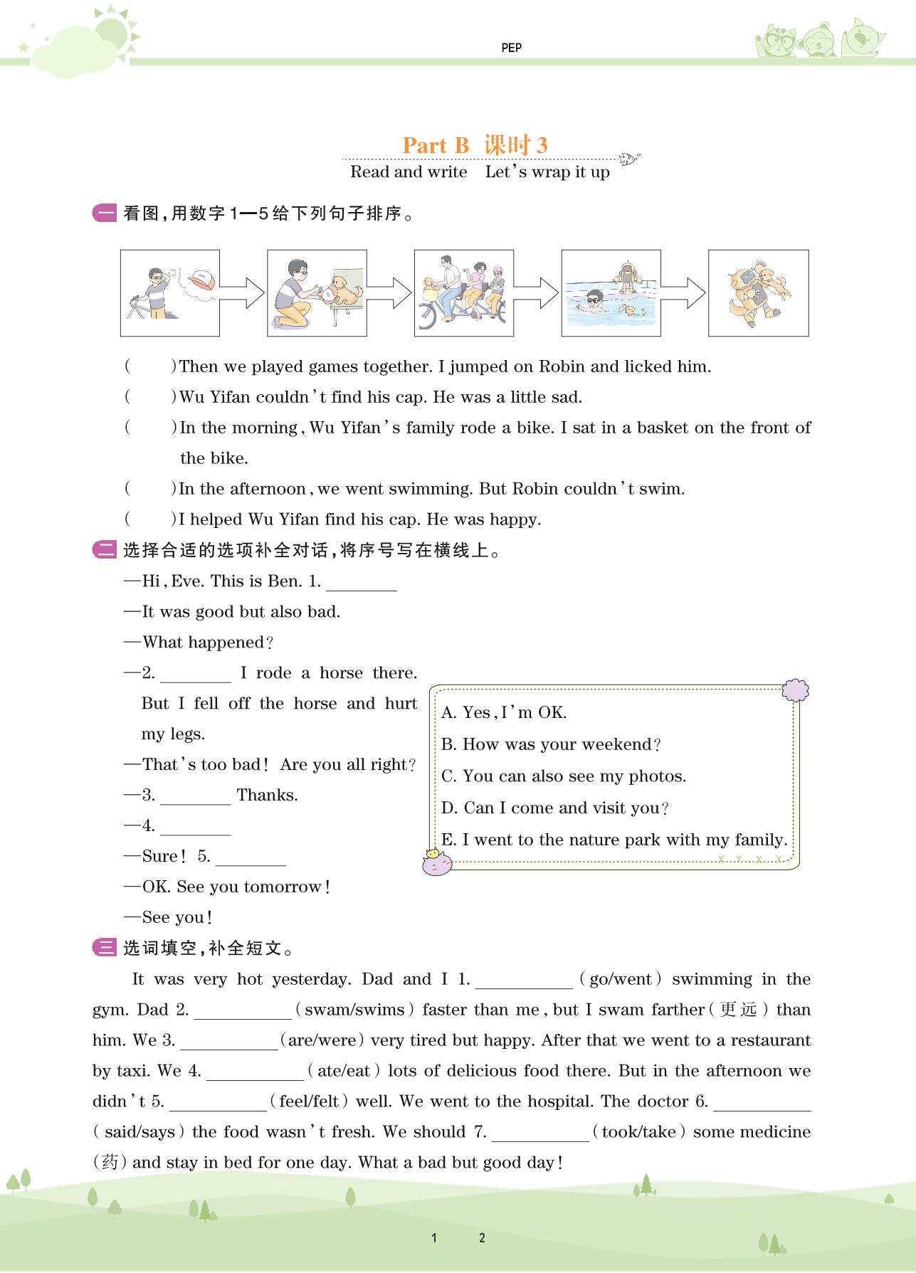 2021下册六年级英语PEP版 Unit 3 Part B—课时 3 Read and write Let’s wrap it up