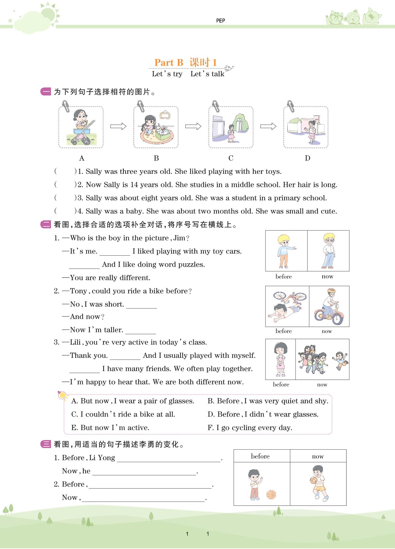 2021下册六年级英语PEP版 Unit 4 Part B—课时 1 Let’s try Let’s talk