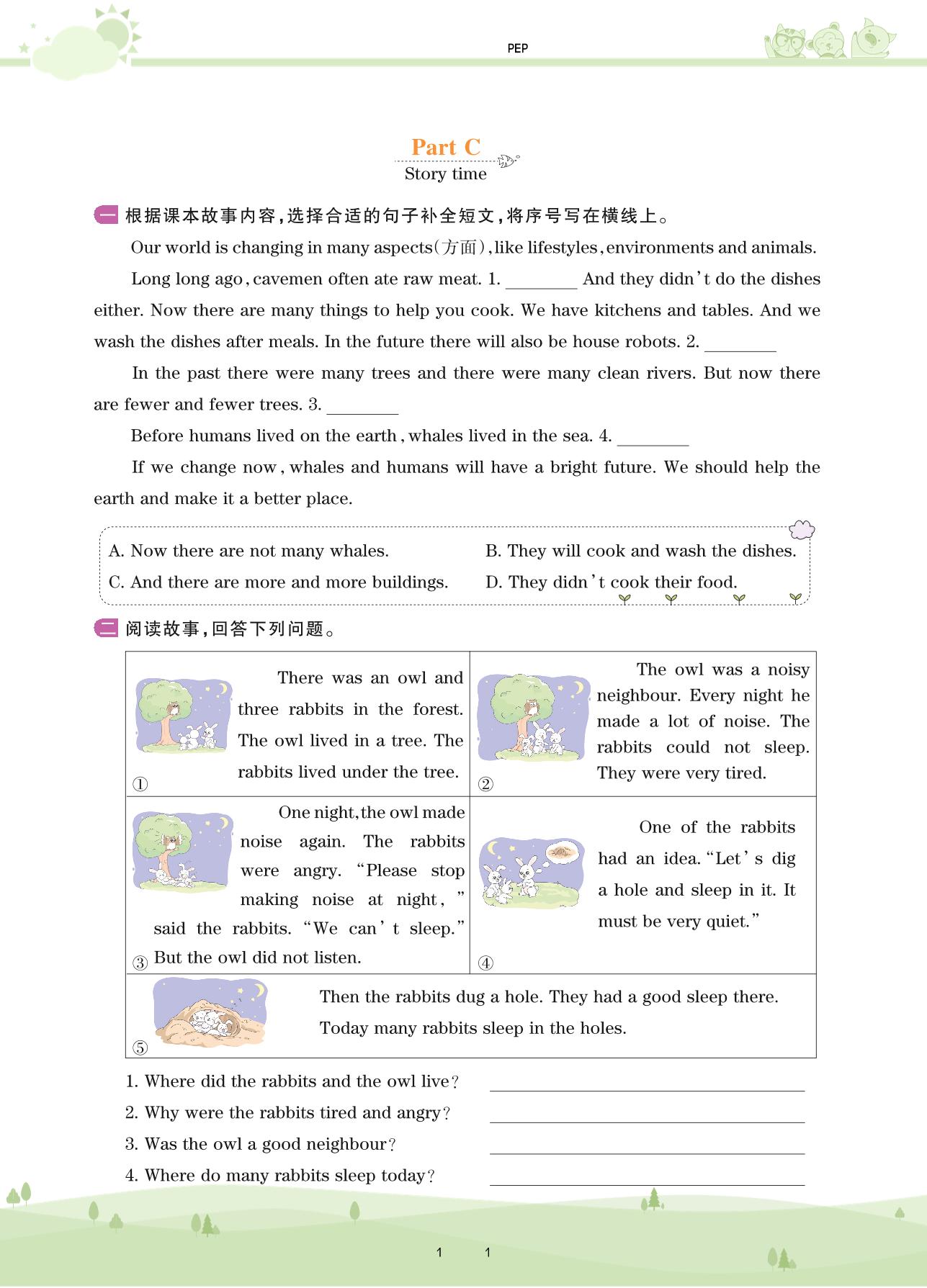 2021下册六年级英语PEP版 Unit 4 Part C Story time