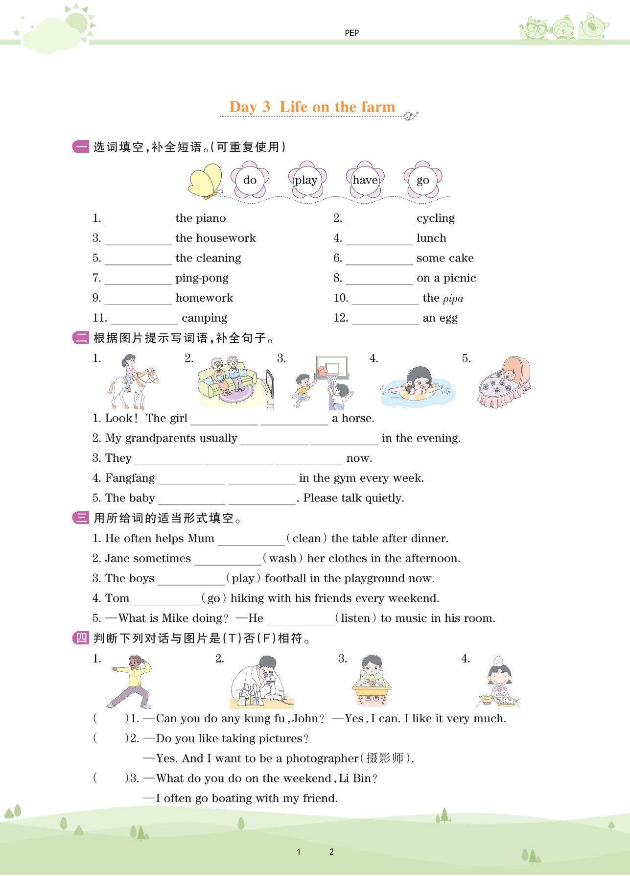 2021下册六年级英语PEP版 Recycle—Day 3 Life on the farm