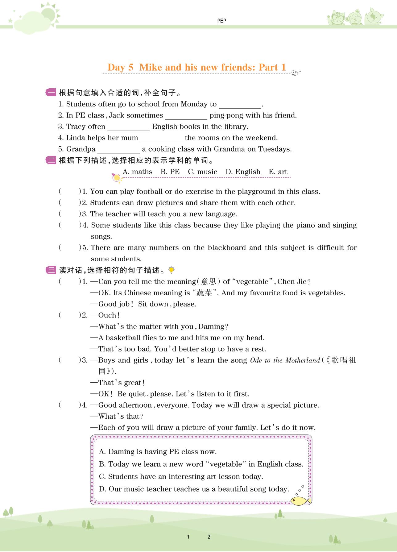 2021下册六年级英语PEP版 Recycle—Day 5 Mike and his new friends Part 1
