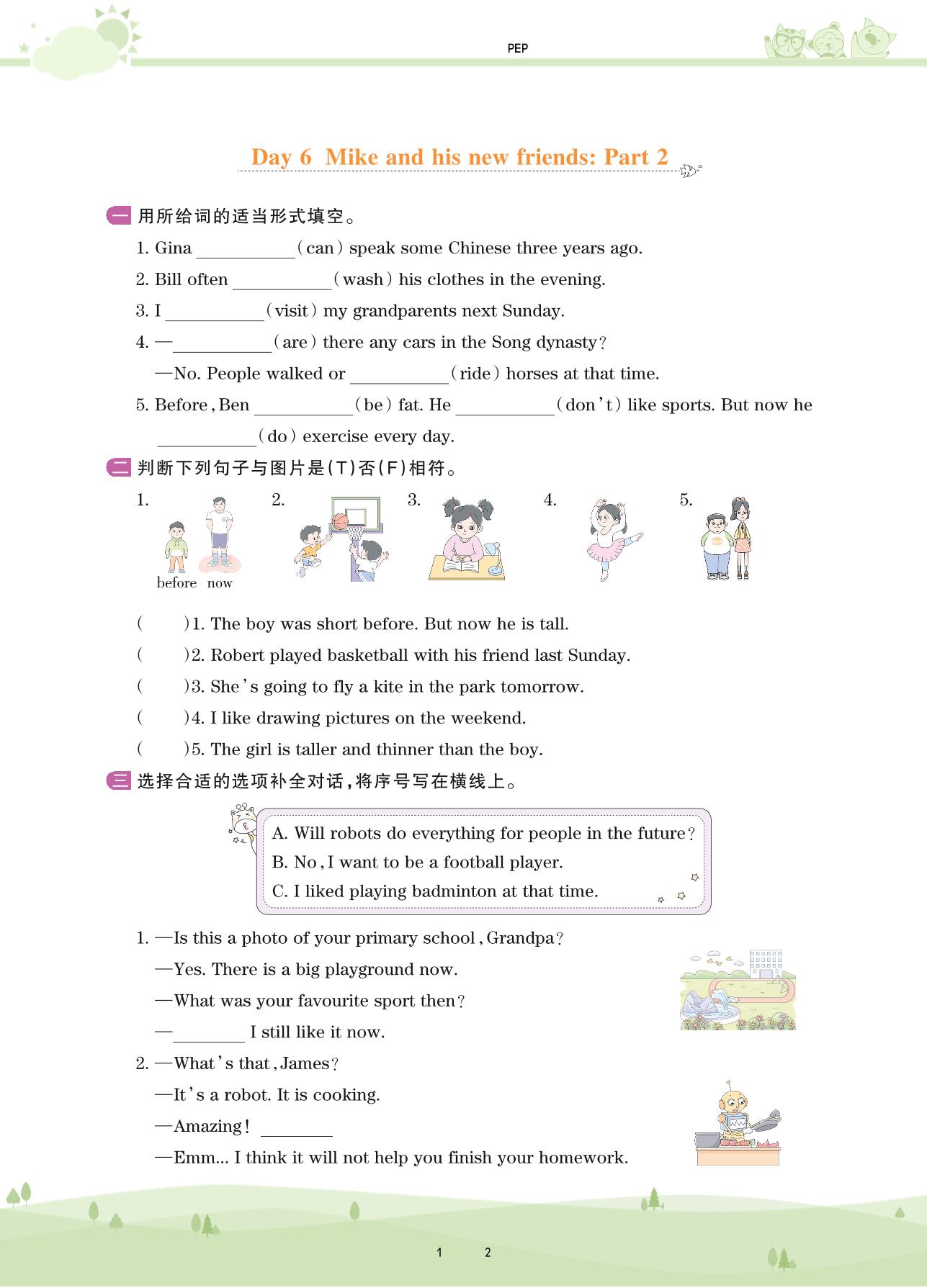 2021下册六年级英语PEP版 Recycle—Day 6 Mike and his new friends Part 2
