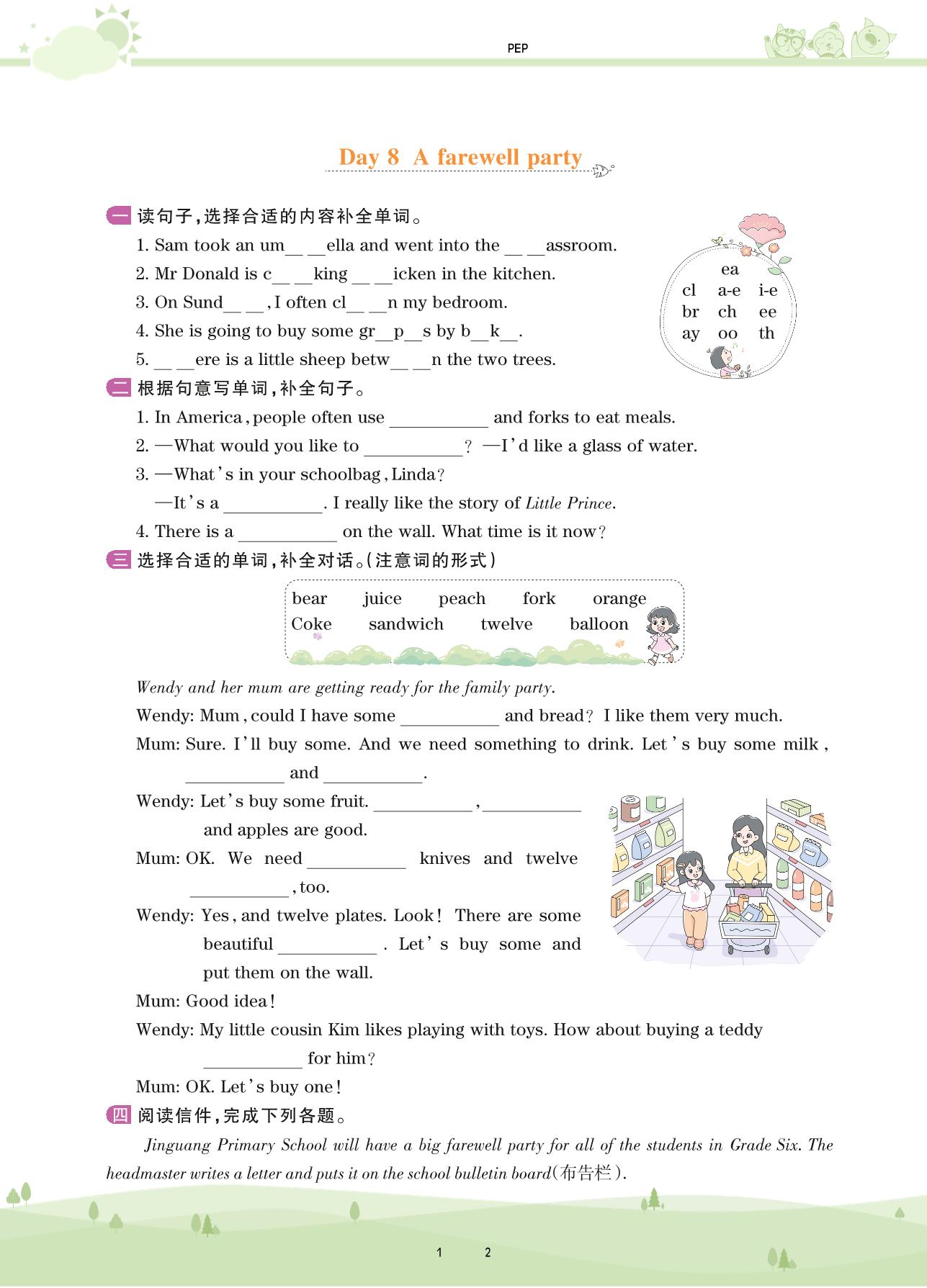 2021下册六年级英语PEP版 Recycle—Day 8 A farewell party