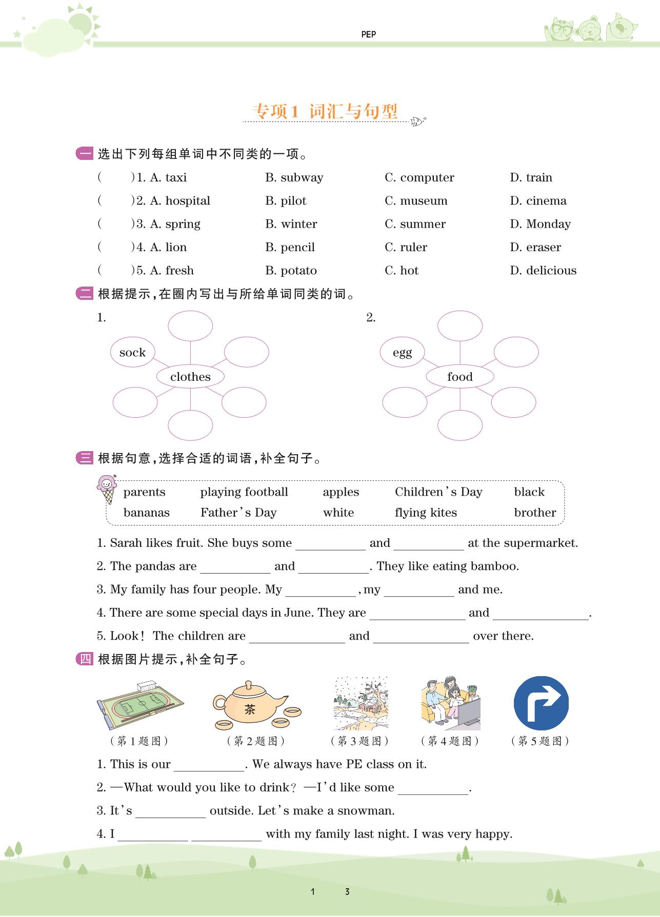 2021下册六年级英语PEP版 专项1 词汇与句型