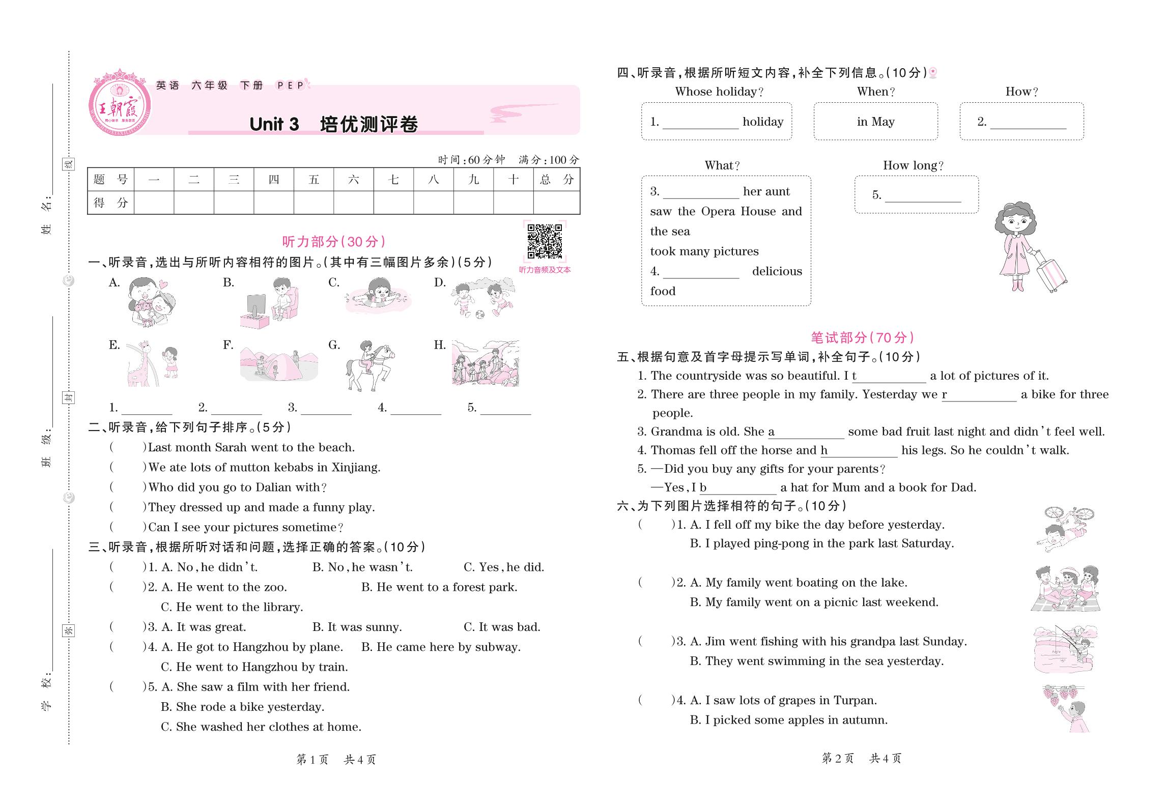 2021下册六年级英语PEP版 Unit 3 培优测评卷