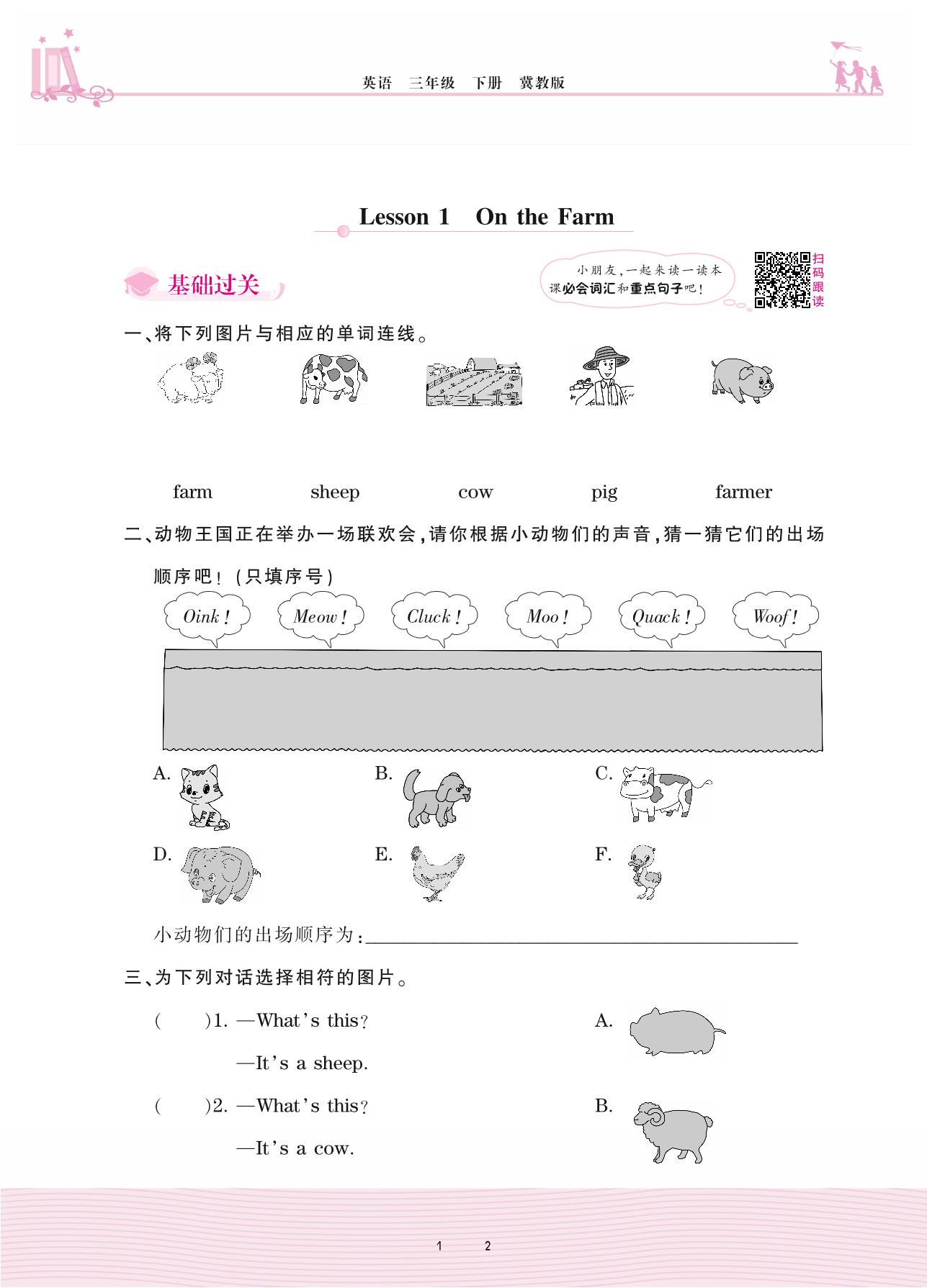 2021下册三年级英语冀教版 Unit 1—Lesson 1 On the Farm