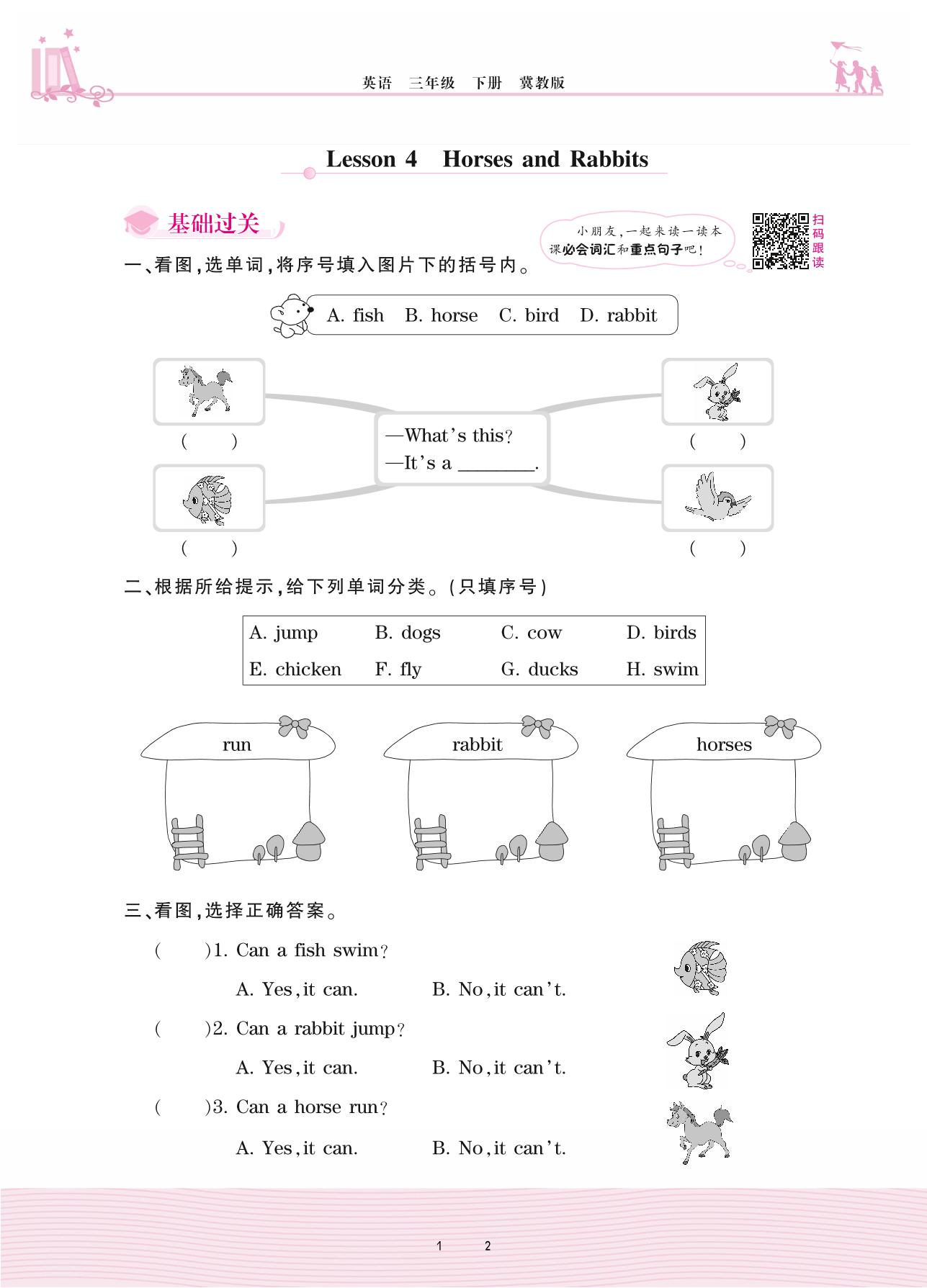 2021下册三年级英语冀教版 Unit 1—Lesson 4 Horses and Rabbits