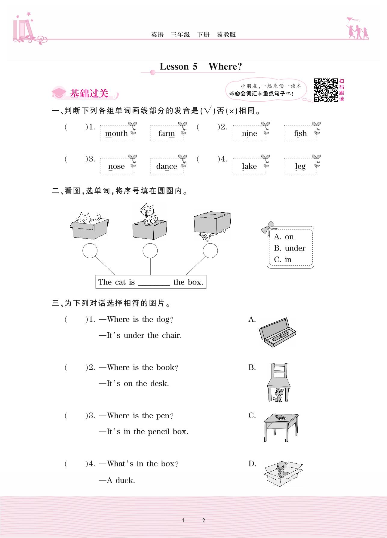 2021下册三年级英语冀教版 Unit 1—Lesson 5 Where?
