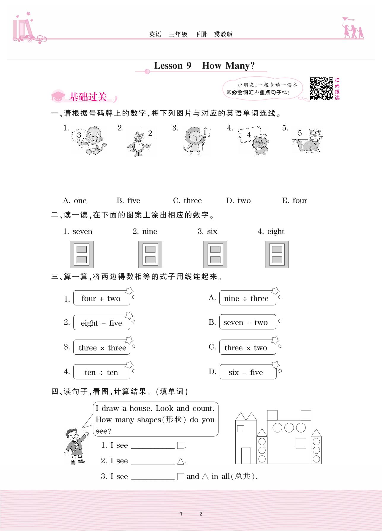 2021下册三年级英语冀教版 Unit 2—Lesson 9 How Many?