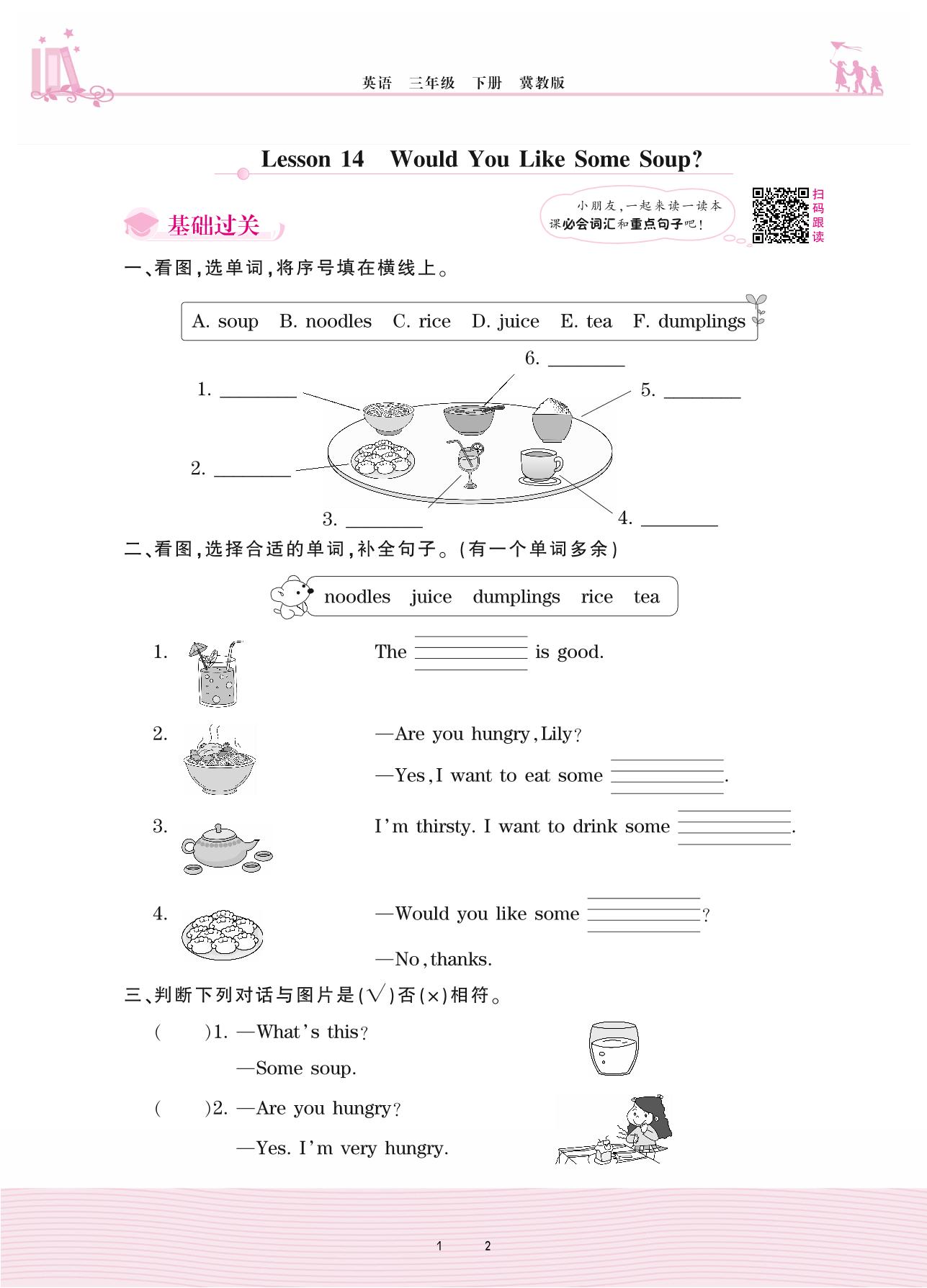 2021下册三年级英语冀教版 Unit 3—Lesson 14 Would You Like Some Soup?