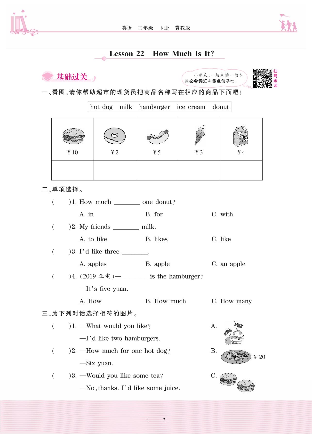 2021下册三年级英语冀教版 Unit 4—Lesson 22 How Much Is It?