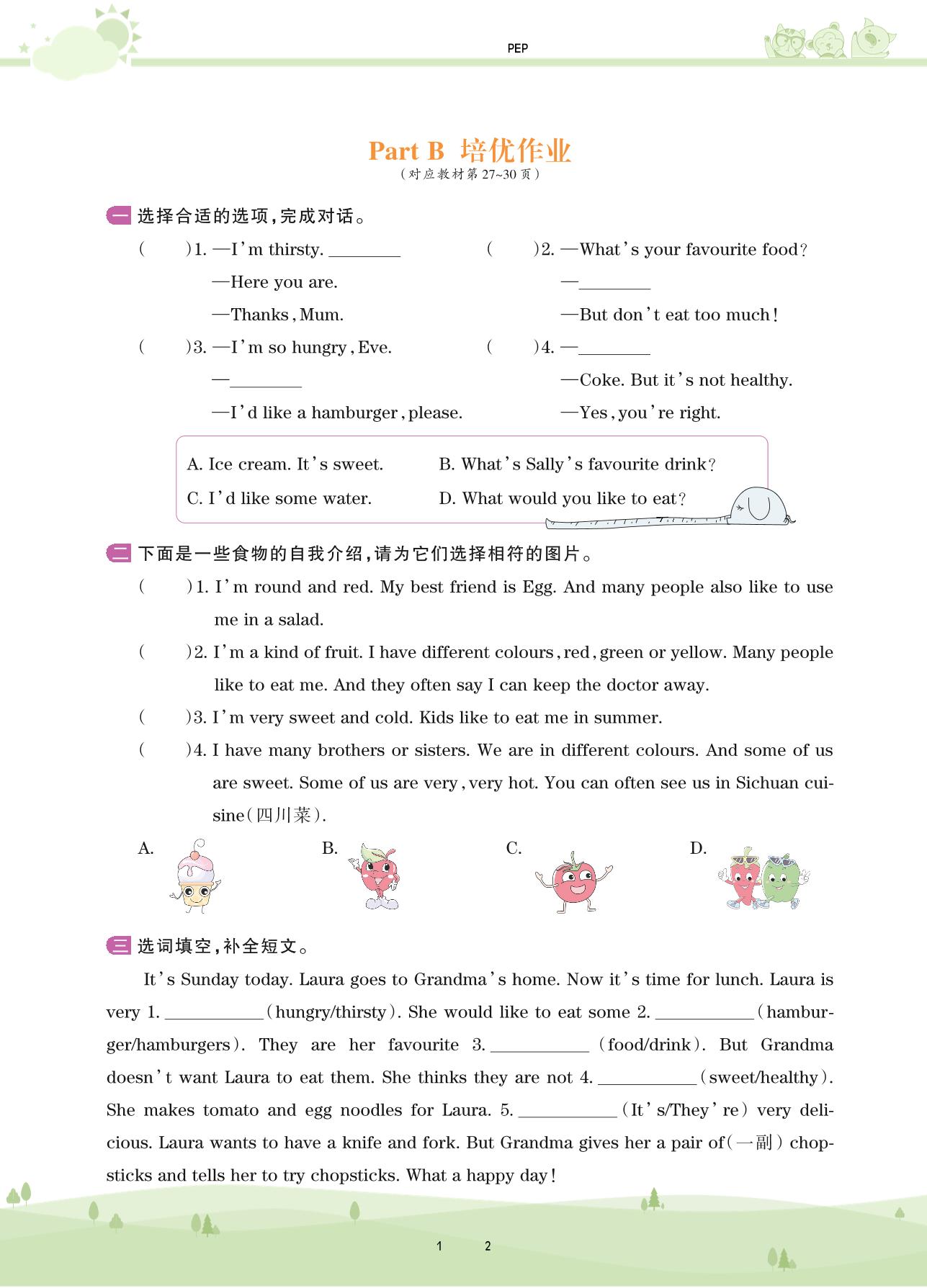 2020上册五年级英语人教PEP版 Unit 3 What would you like?——Part B 培优作业