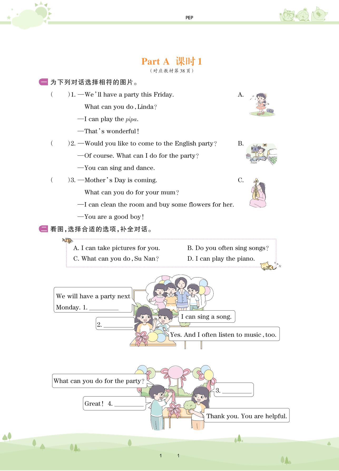 2020上册五年级英语人教PEP版 Unit 4 What can you do?——Part A 课时1