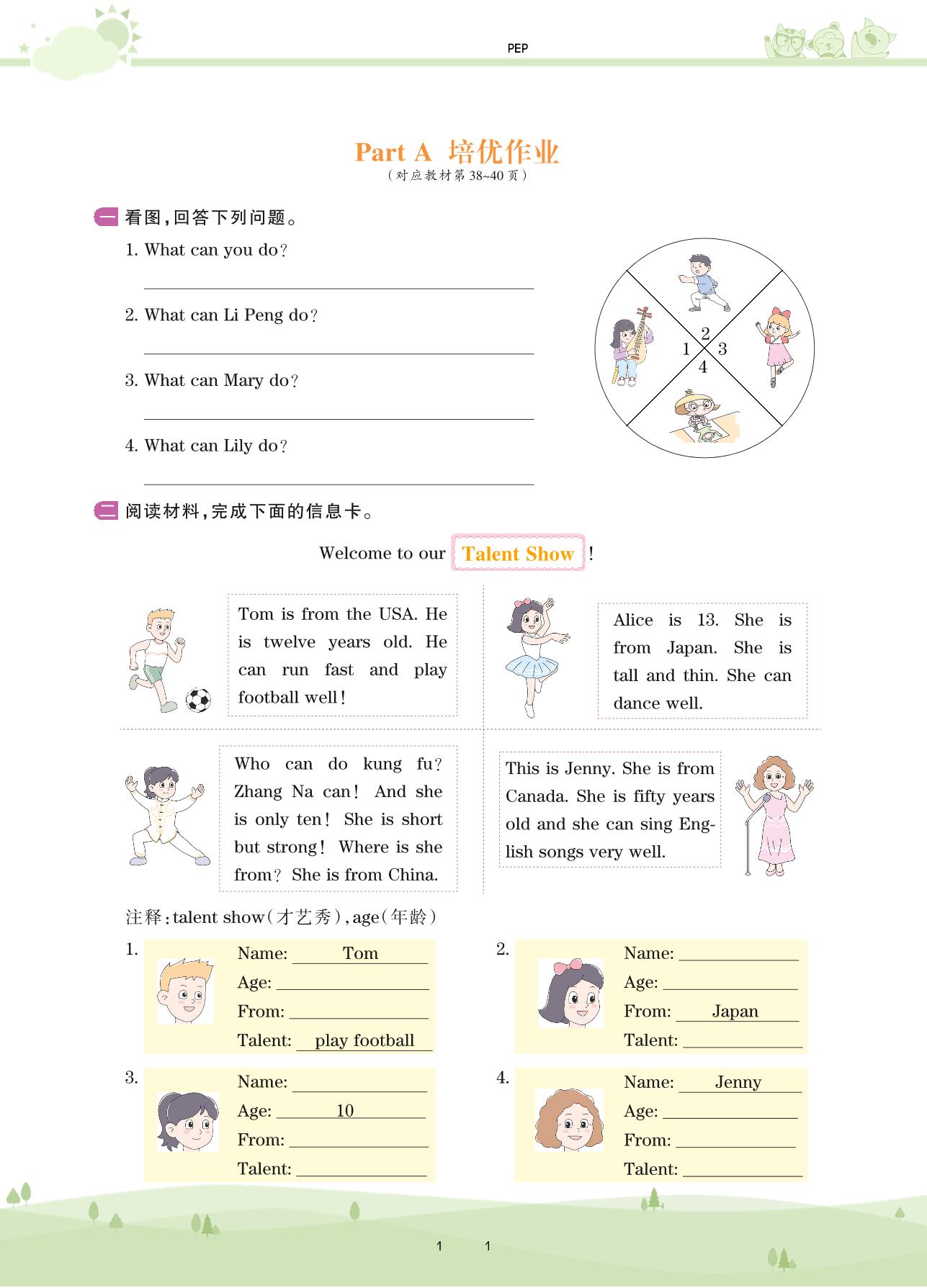 2020上册五年级英语人教PEP版 Unit 4 What can you do?——Part A 培优作业
