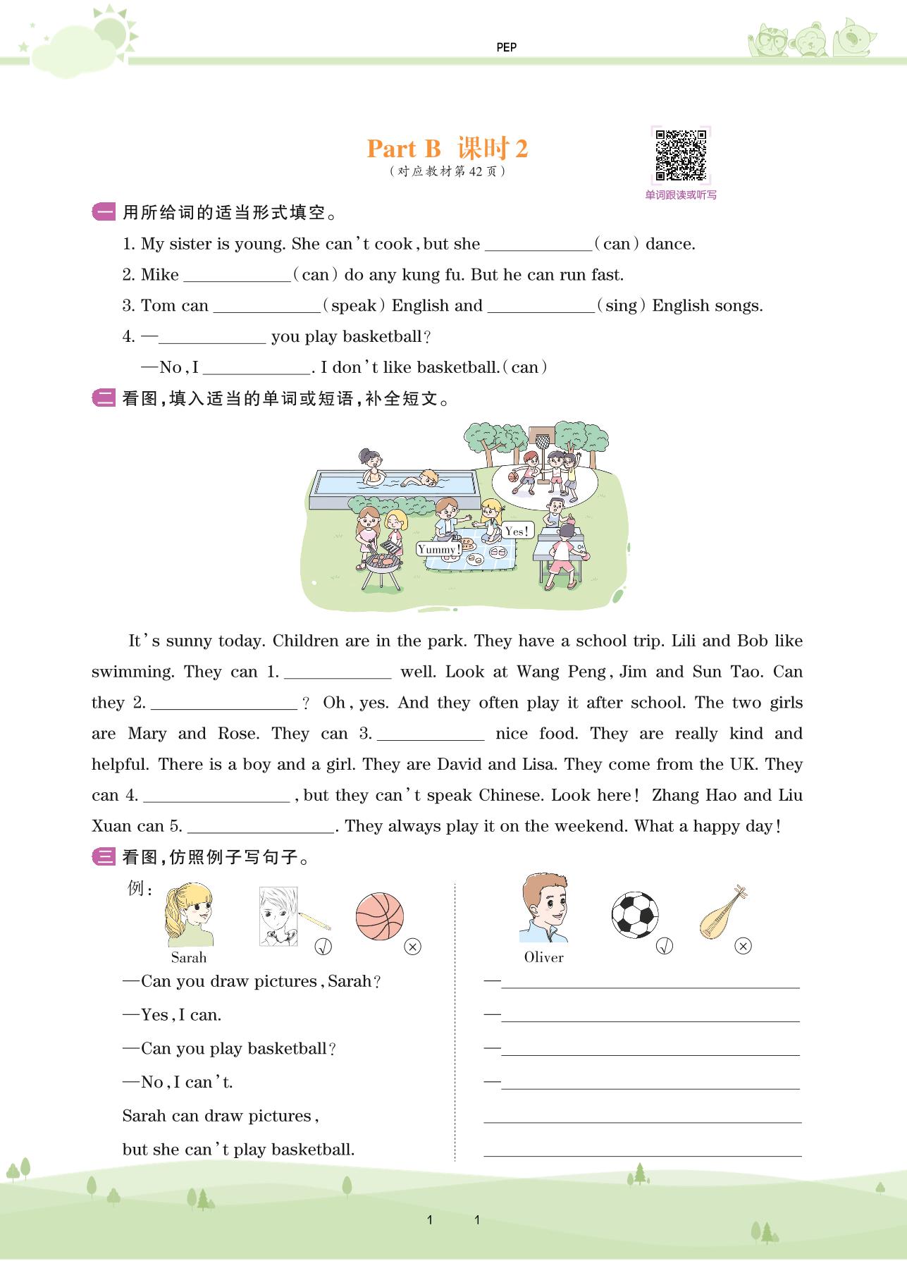2020上册五年级英语人教PEP版 Unit 4 What can you do?——Part B 课时2