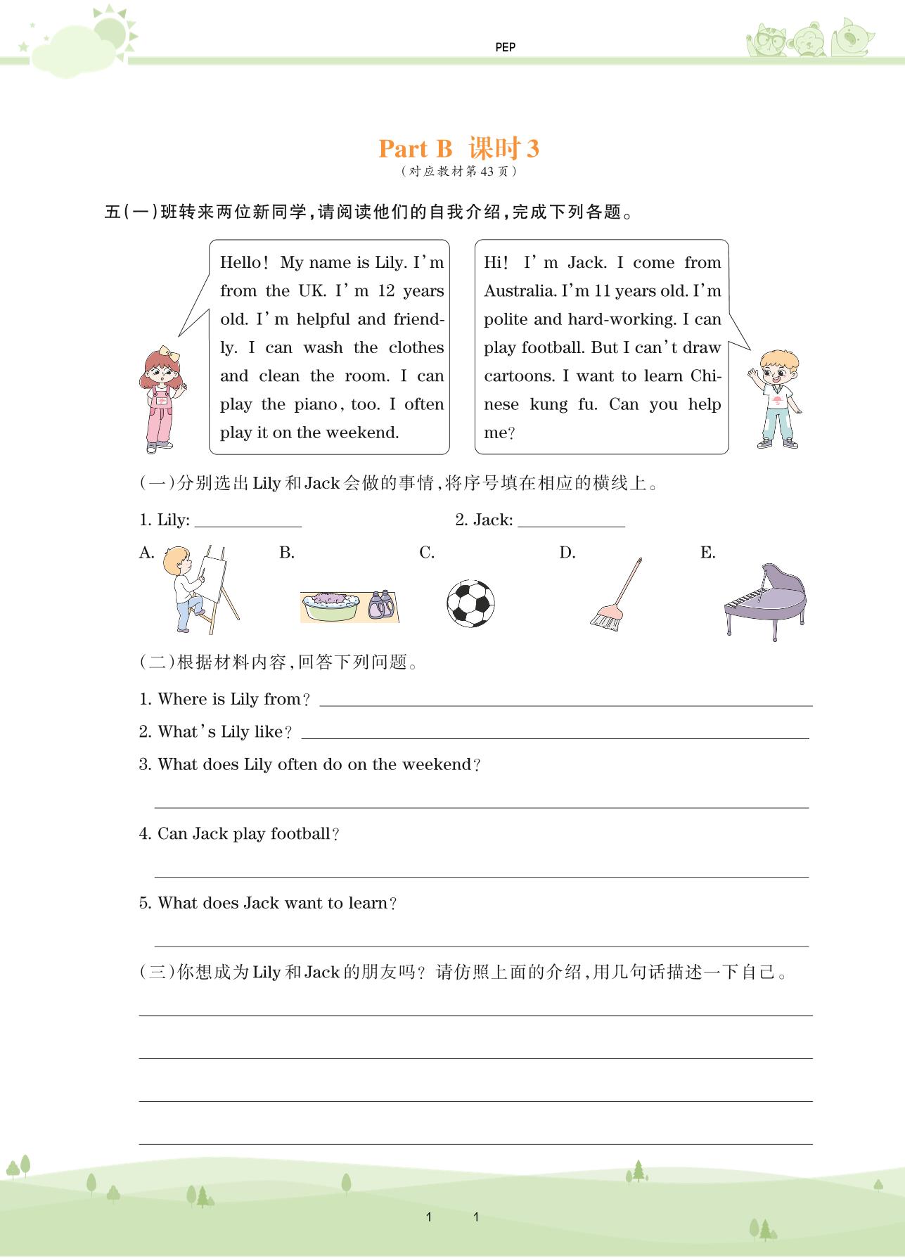 2020上册五年级英语人教PEP版 Unit 4 What can you do?——Part B 课时3