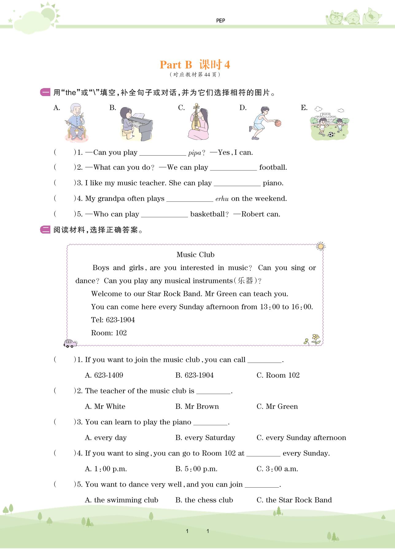 2020上册五年级英语人教PEP版 Unit 4 What can you do?——Part B 课时4