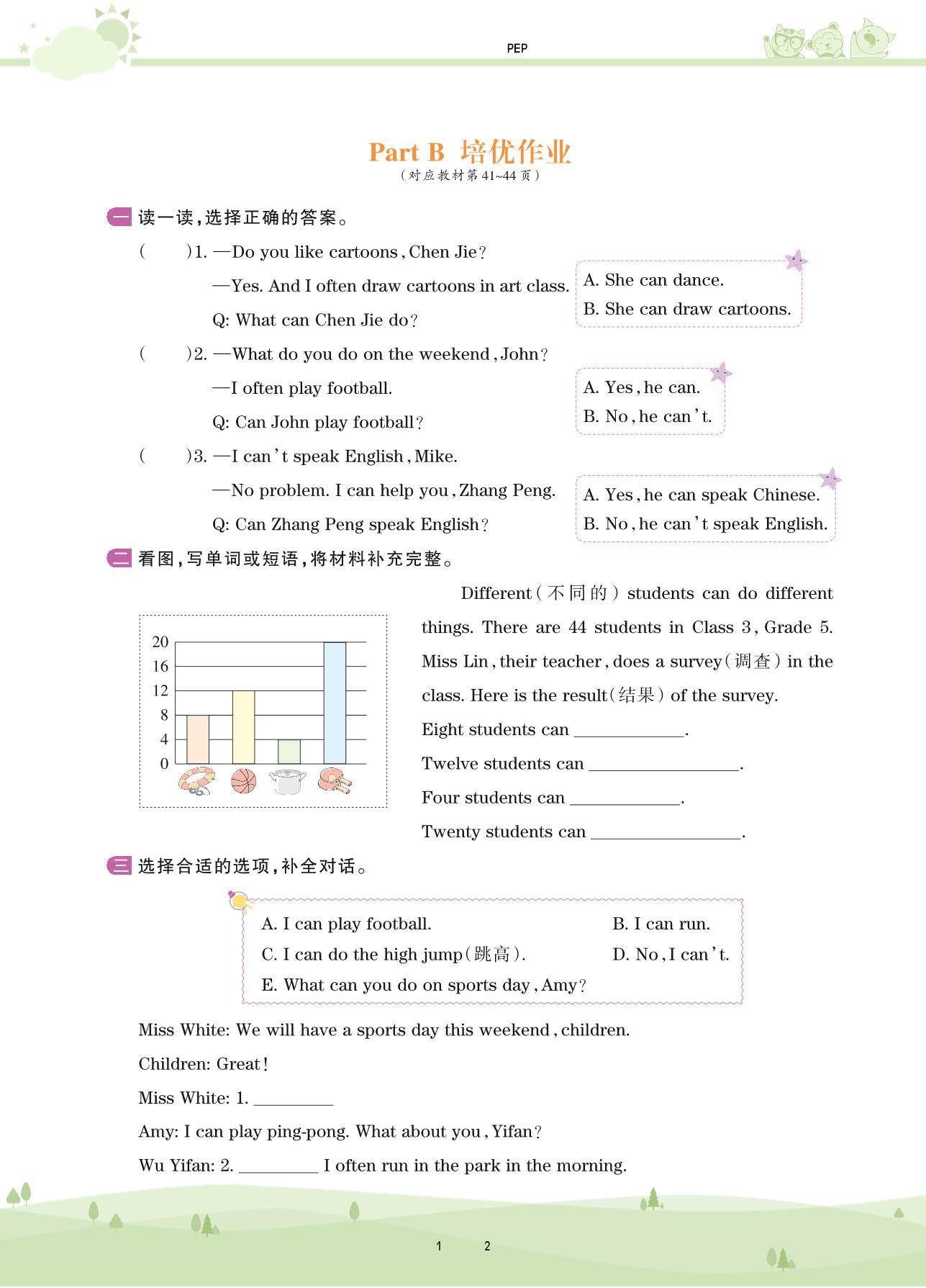 2020上册五年级英语人教PEP版 Unit 4 What can you do?——Part B 培优作业
