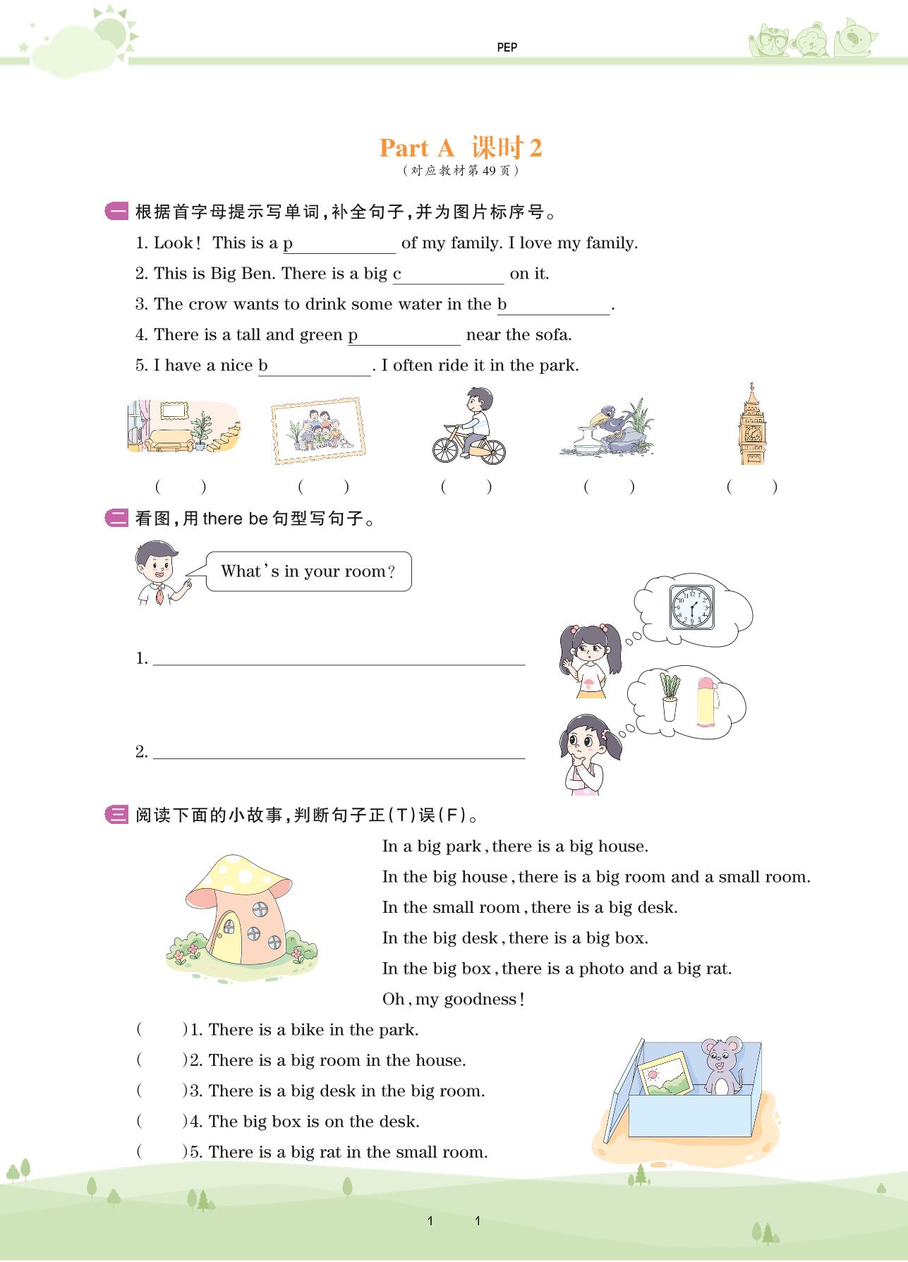2020上册五年级英语人教PEP版 Unit 5 There is a big bed——Part A 课时2