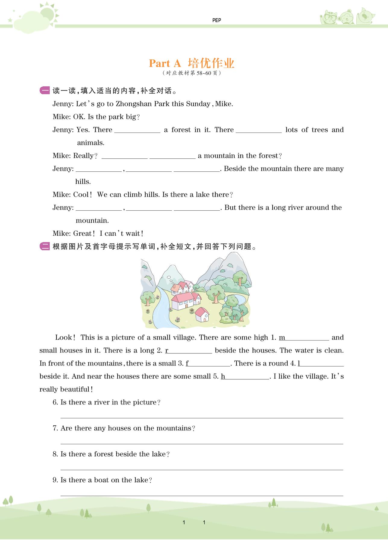2020上册五年级英语人教PEP版 Unit 6 In a nature park——Part A 培优作业