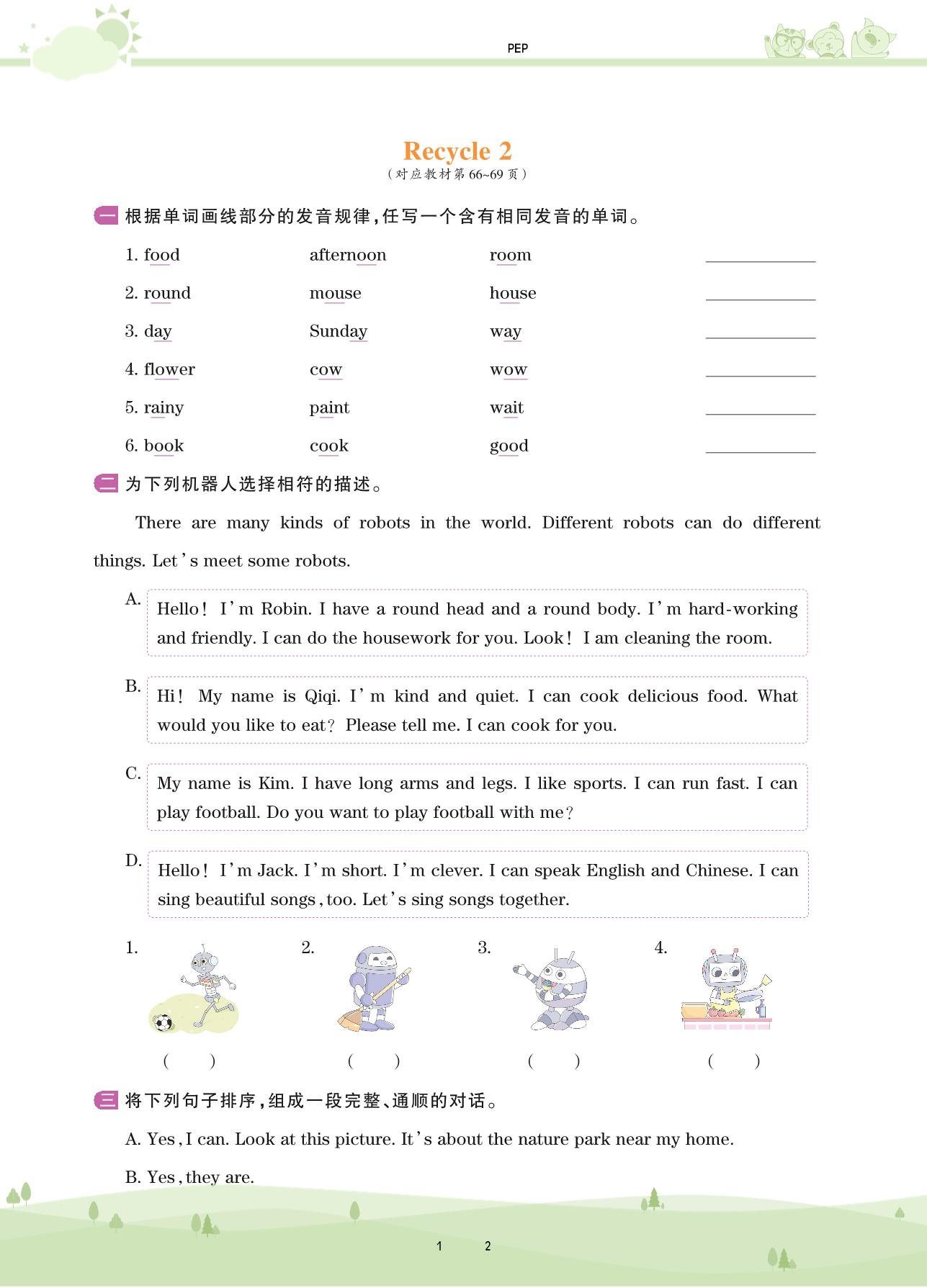2020上册五年级英语人教PEP版 Recycle 2 _R210922155428983