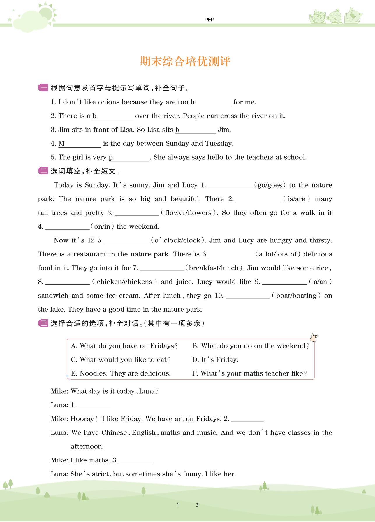 2020上册五年级英语人教PEP版 期末综合培优测评
