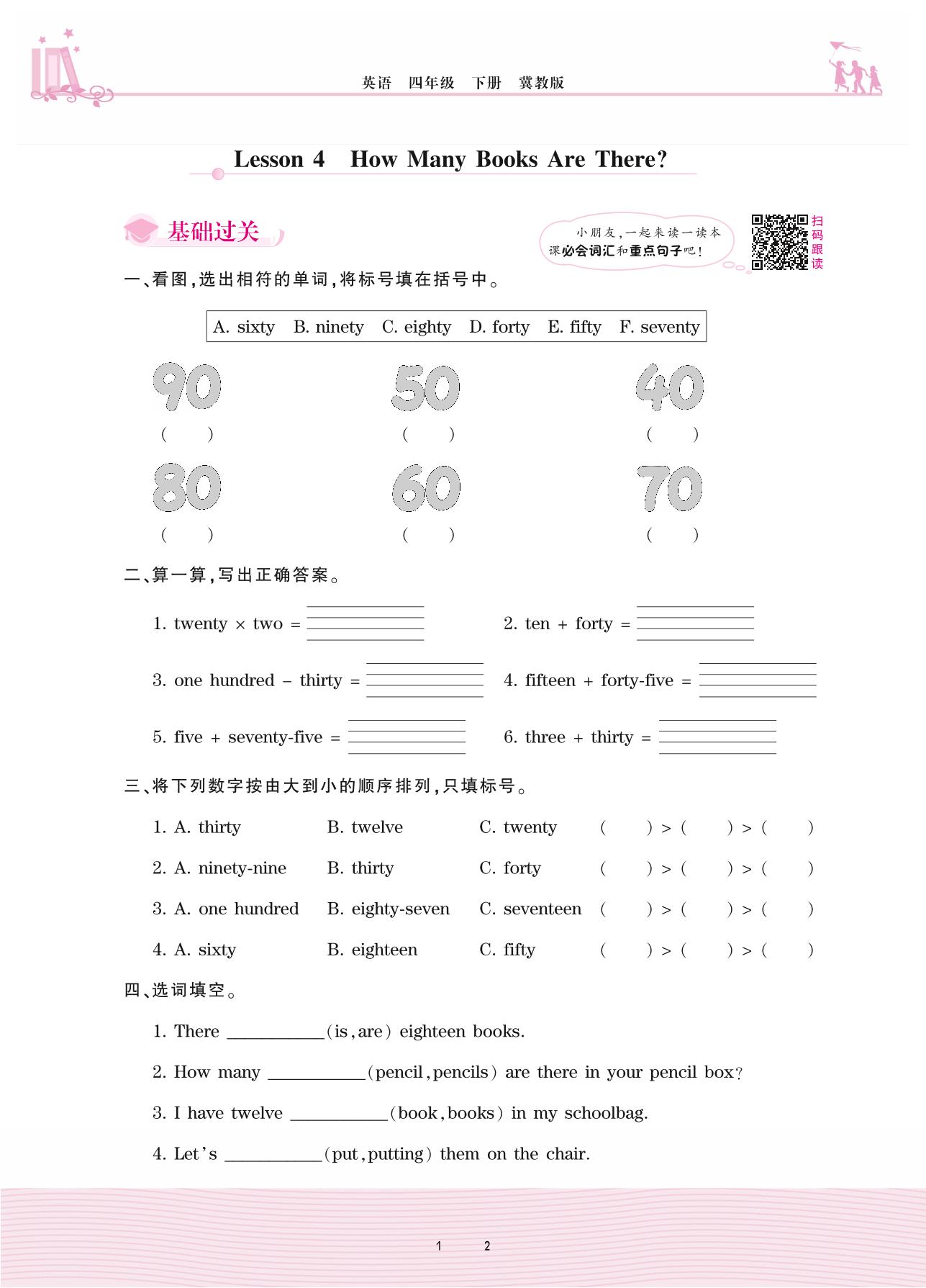 2021下册四年级英语冀教版 Unit 1—Lesson 4 How Many Books Are There?