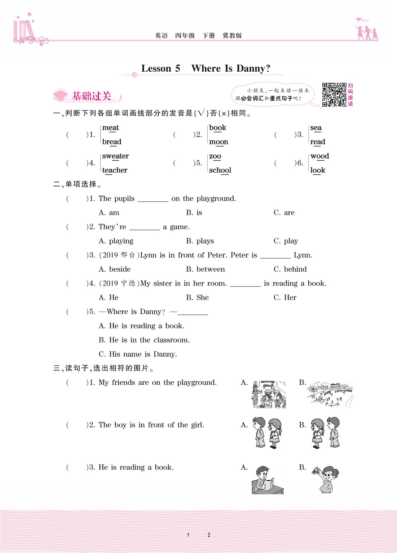 2021下册四年级英语冀教版 Unit 1—Lesson 5 Where Is Danny?