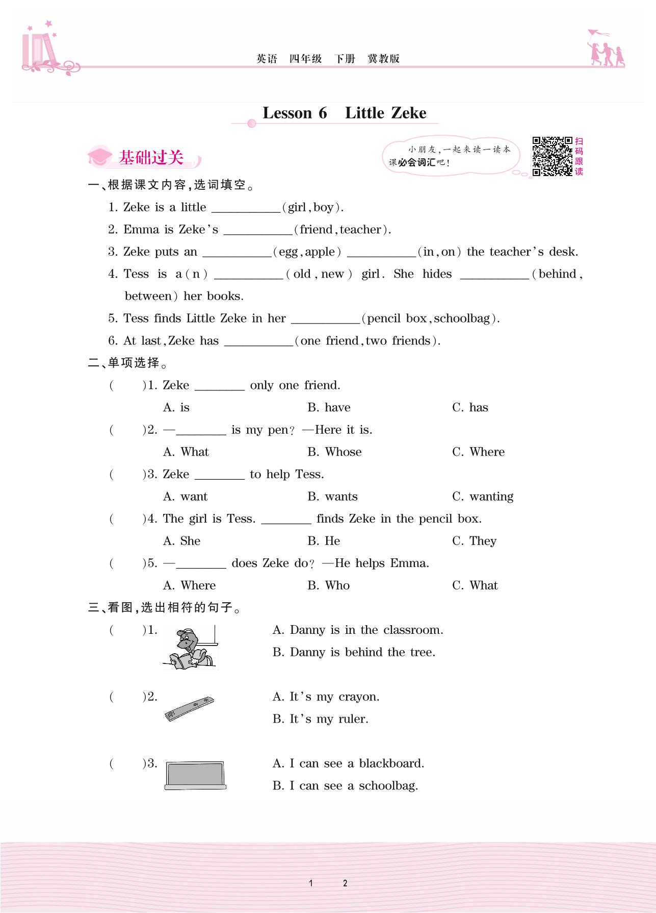 2021下册四年级英语冀教版 Unit 1—Lesson 6 Little Zeke