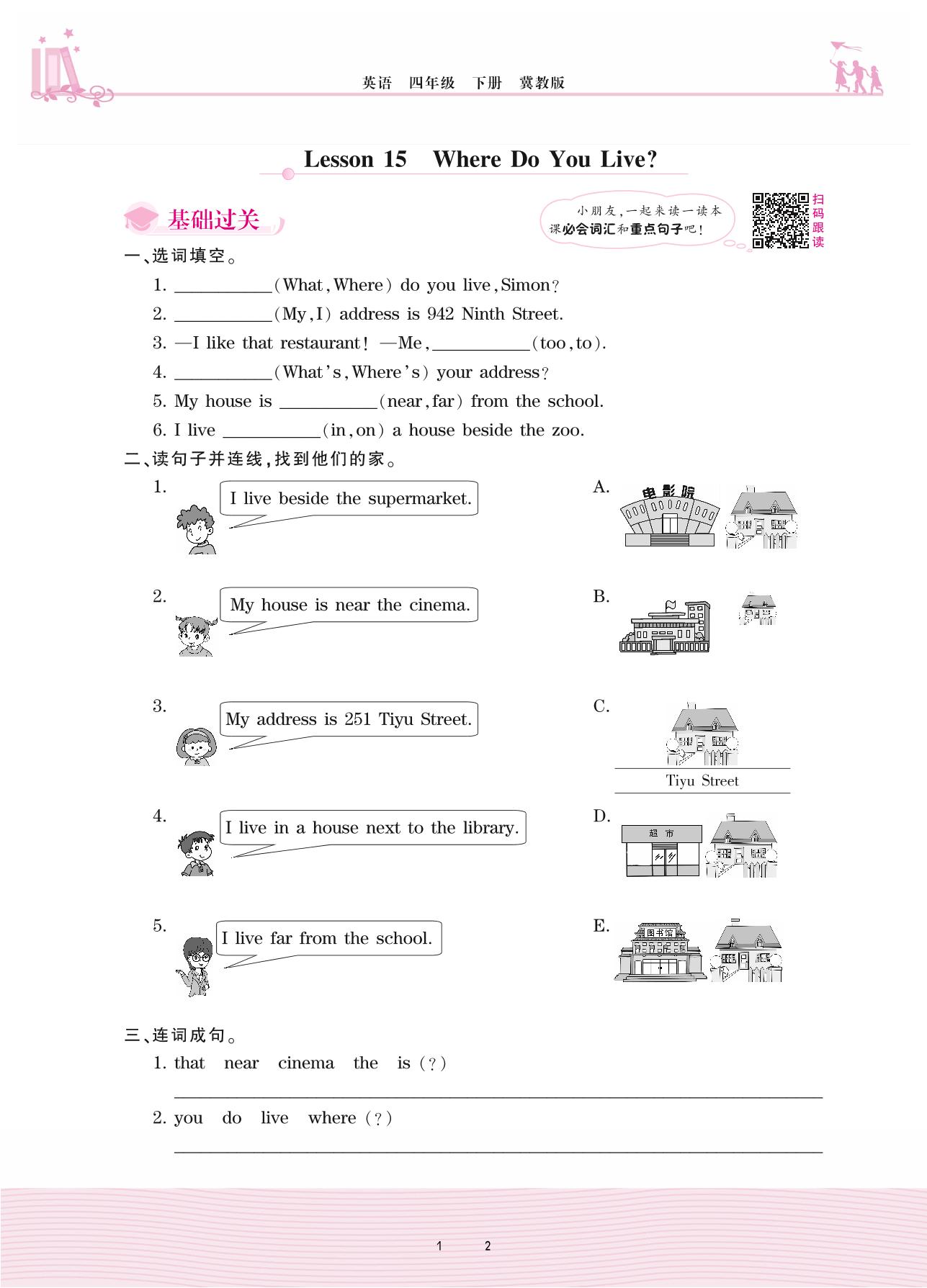 2021下册四年级英语冀教版 Unit 3—Lesson 15 Where Do You Live?