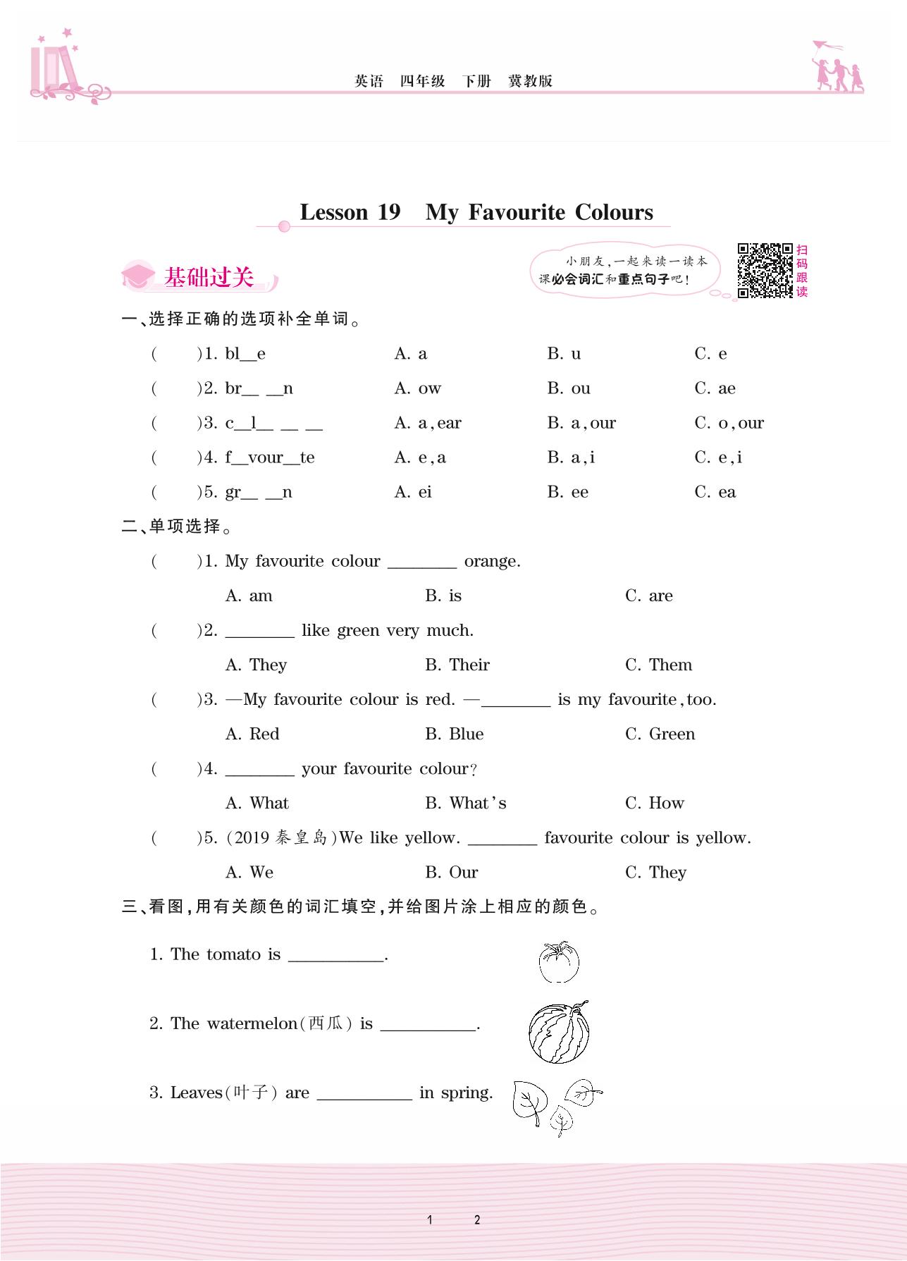 2021下册四年级英语冀教版 Unit 4—Lesson 19 My Favourite Colours