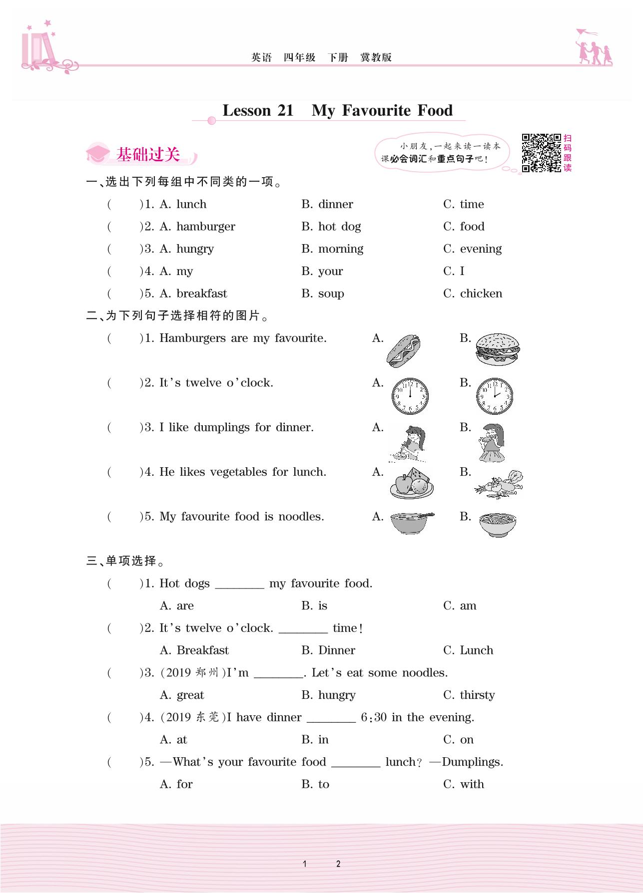 2021下册四年级英语冀教版 Unit 4—Lesson 21 My Favourite Food