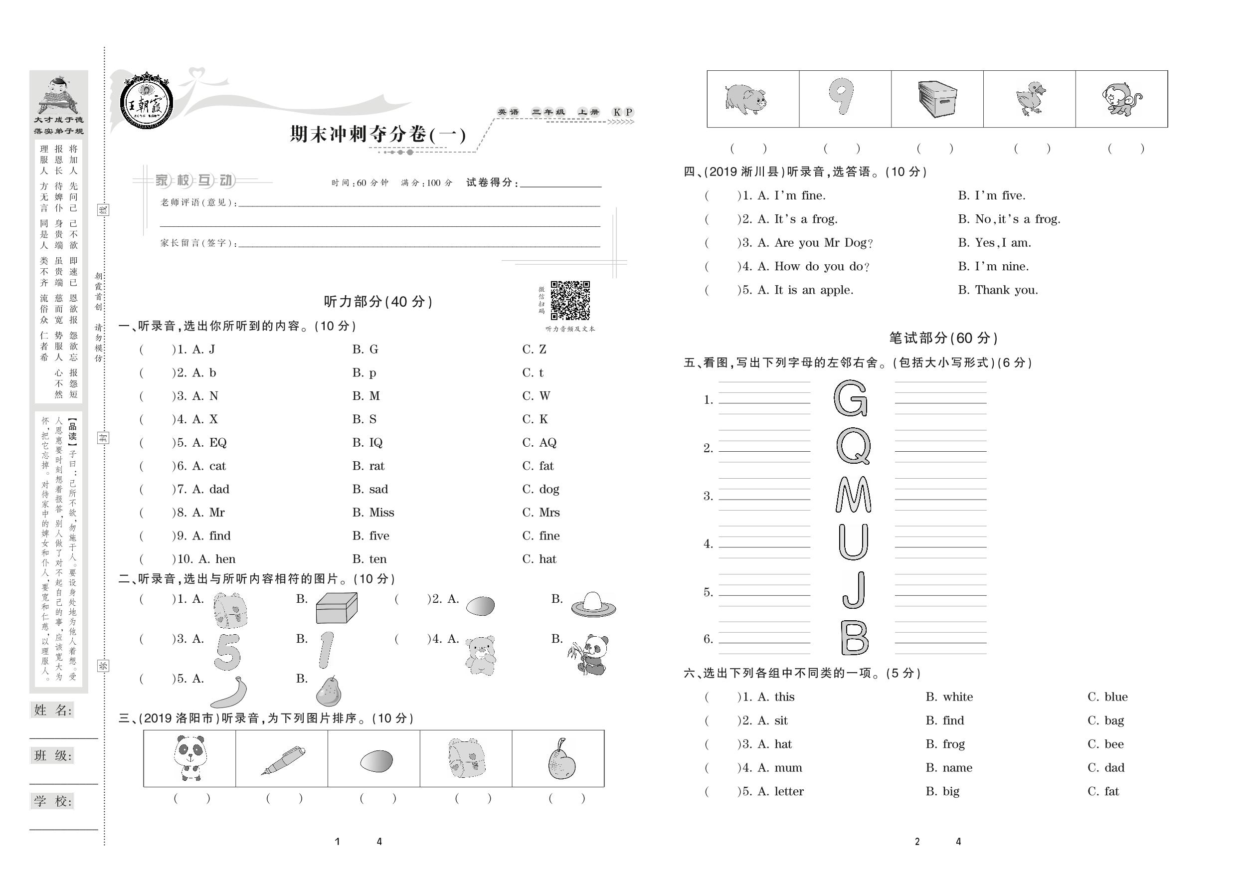 2020上册三年级英语科普版 期末冲刺夺分卷(一)