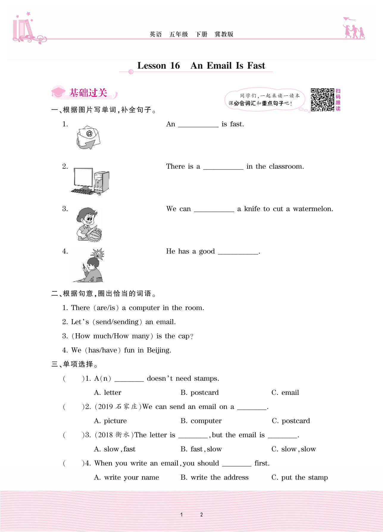 2021下册五年级英语冀教版 Unit 3—Lesson 16 An Email Is Fast