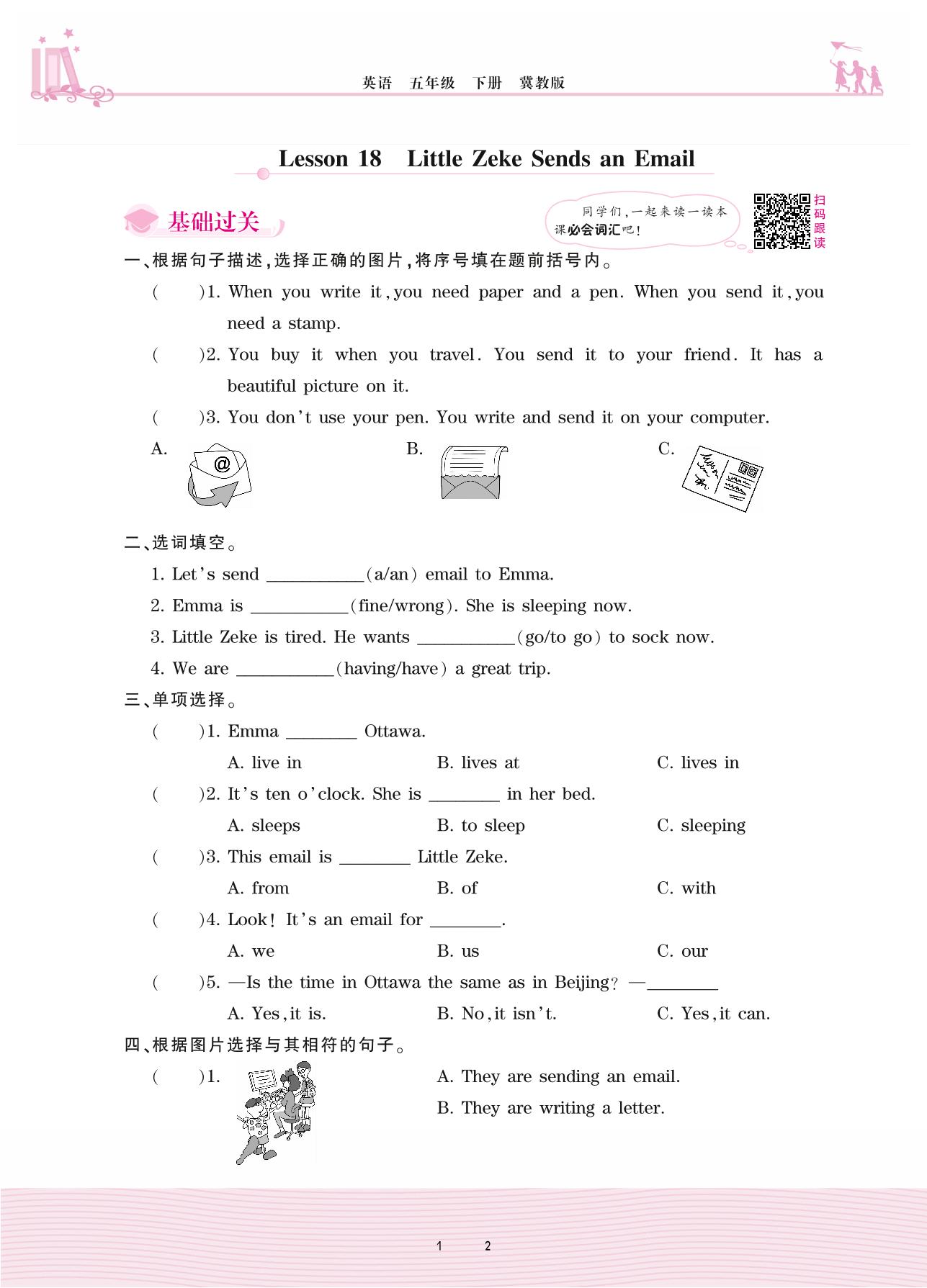 2021下册五年级英语冀教版 Unit 3—Lesson 18 Little Zeke Sends an Email