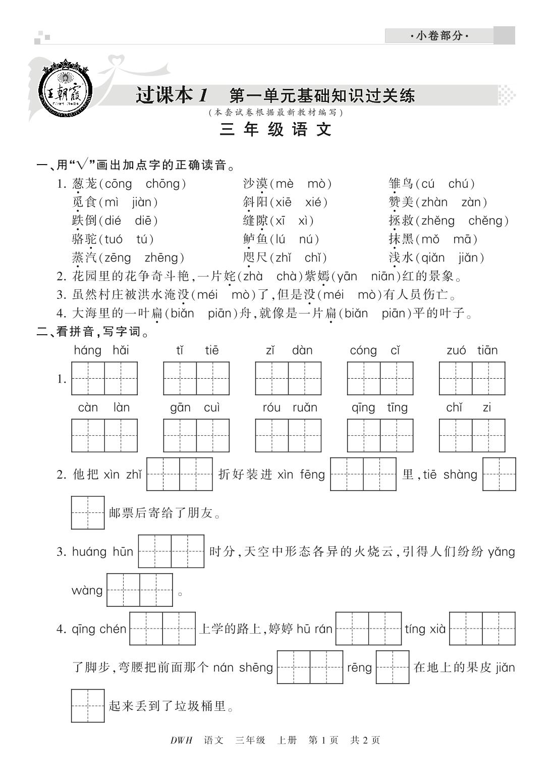 王朝霞期末过课本三年级上册语文(鄂教版)【0】