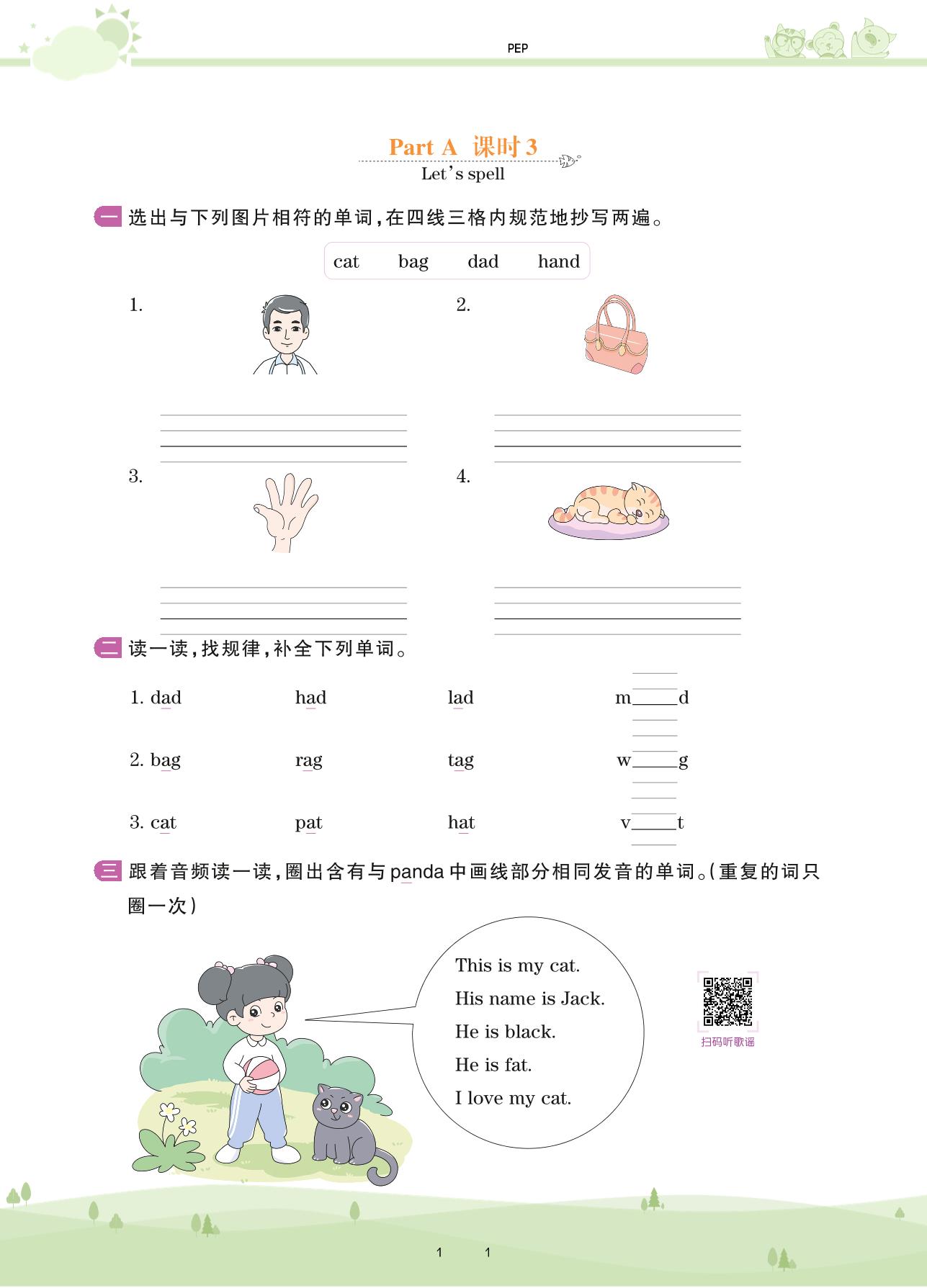 2021下册三年级英语PEP版 Unit 1 Part A—课时 3 Let’s spell