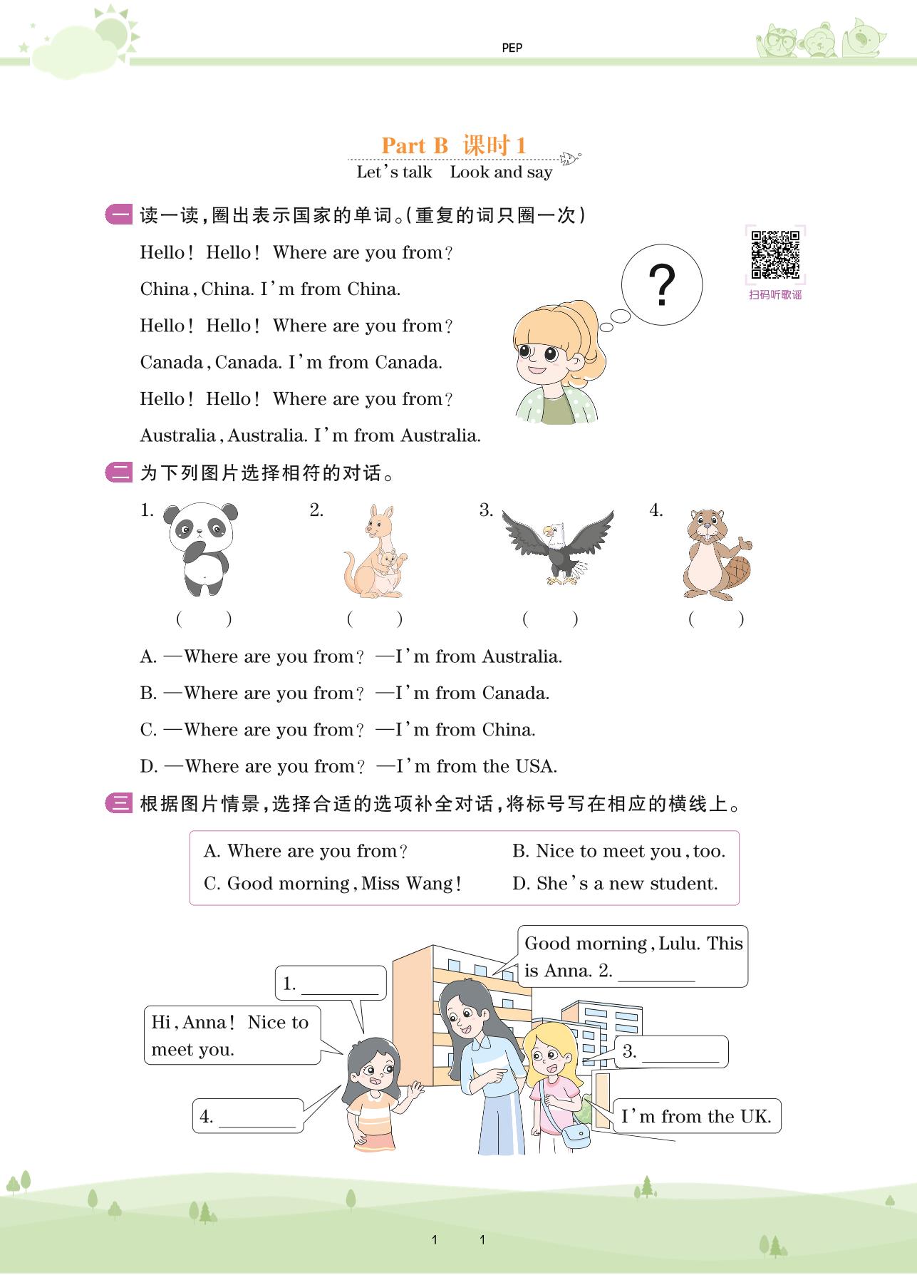 2021下册三年级英语PEP版 Unit 1 Part B—课时 1 Let’s talk Look and say