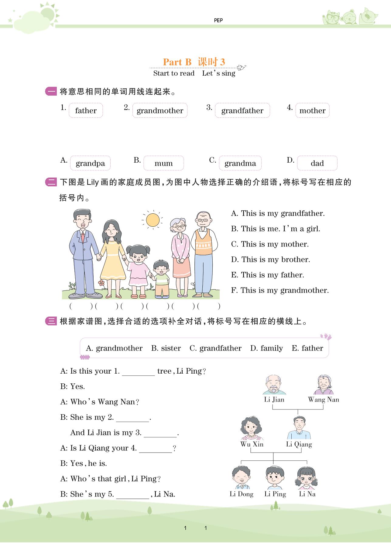 2021下册三年级英语PEP版 Unit 2 Part B—课时 3 Start to read Let’s sing