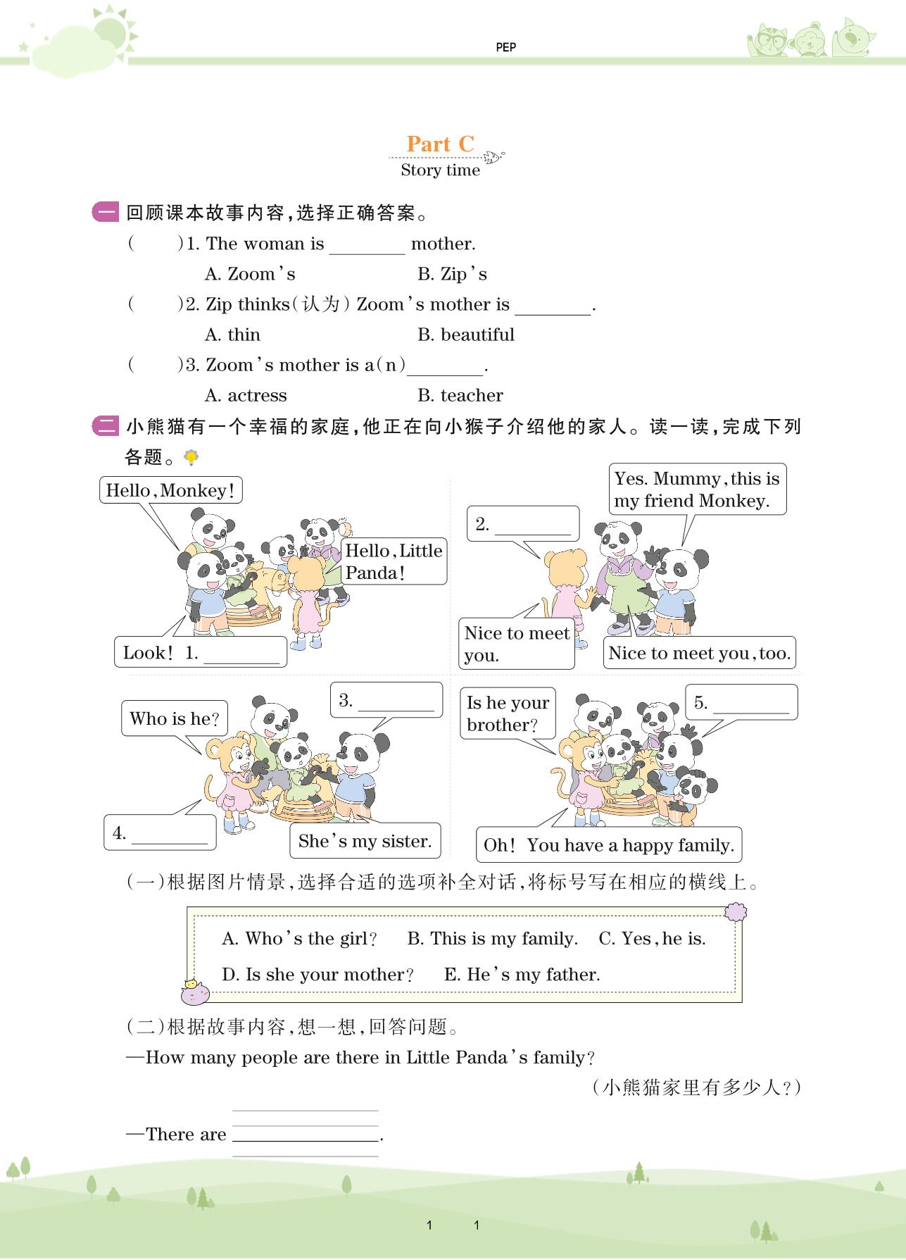 2021下册三年级英语PEP版 Unit 2 Part C Story time