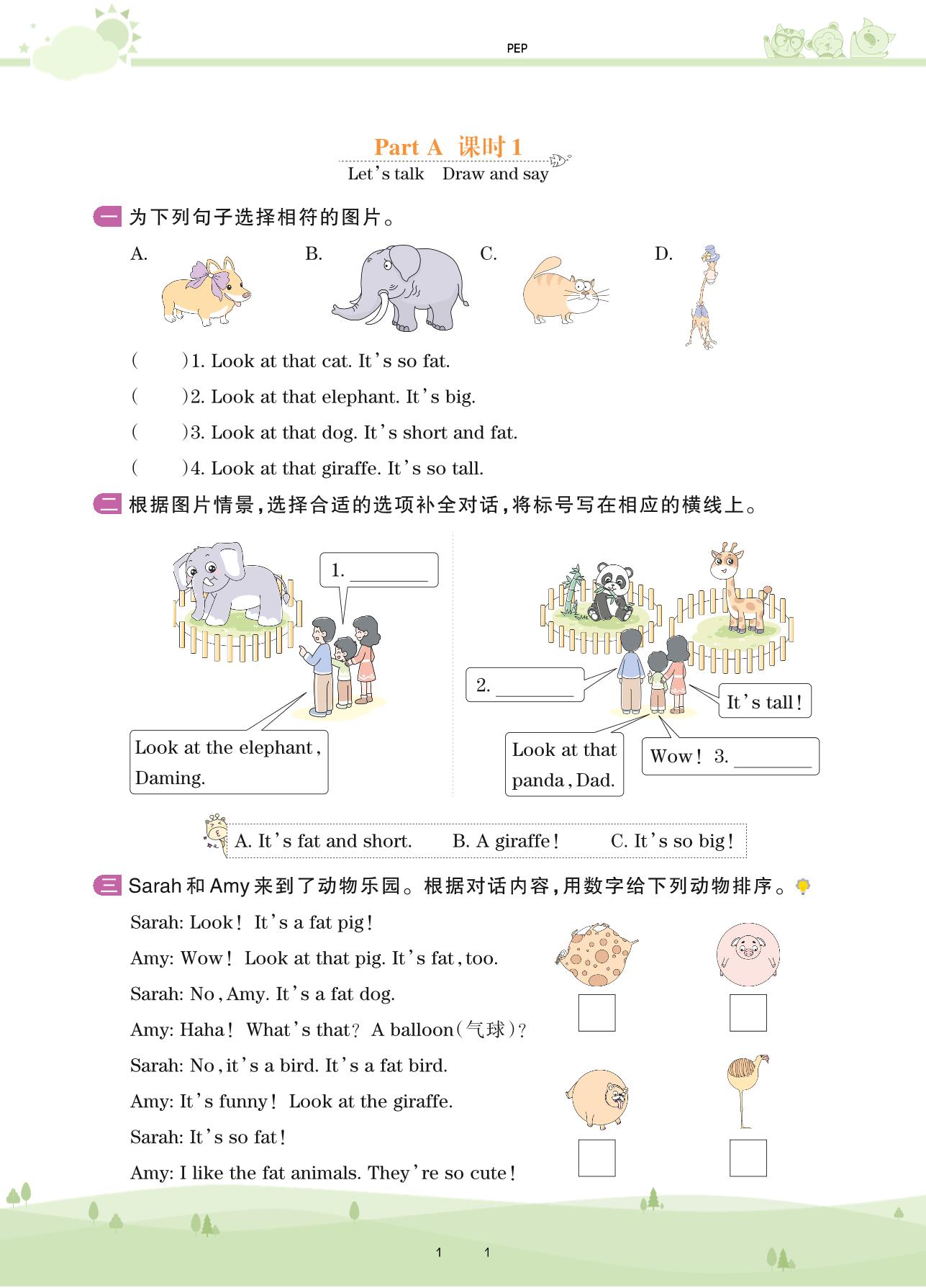 2021下册三年级英语PEP版 Unit 3 Part A—课时 1 Let’s talk Draw and say