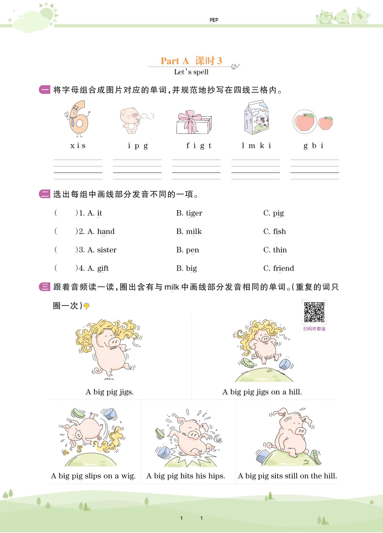 2021下册三年级英语PEP版 Unit 3 Part A—课时 3 Let’s spell