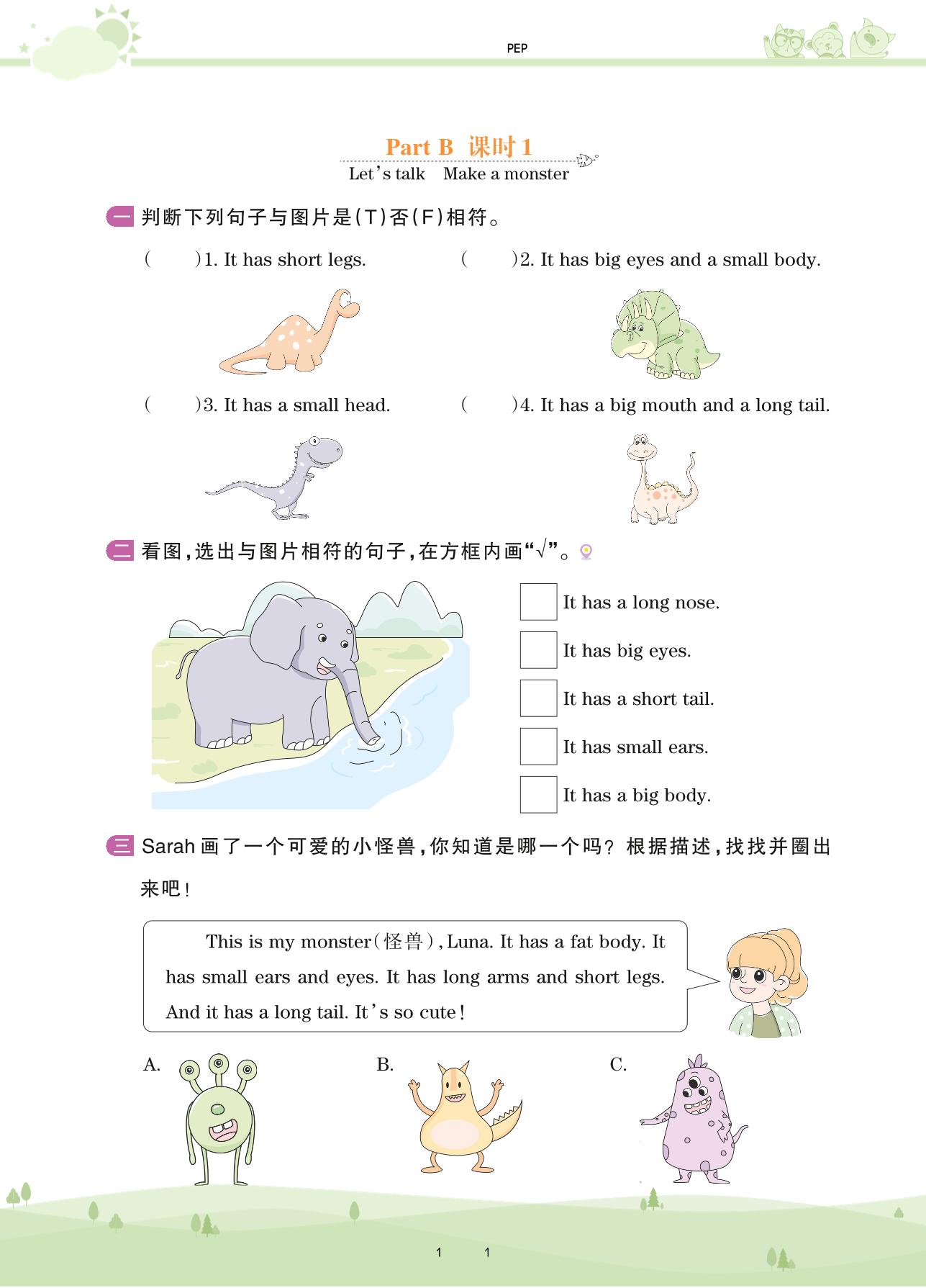 2021下册三年级英语PEP版 Unit 3 Part B—课时 1 Let’s talk Make a monster
